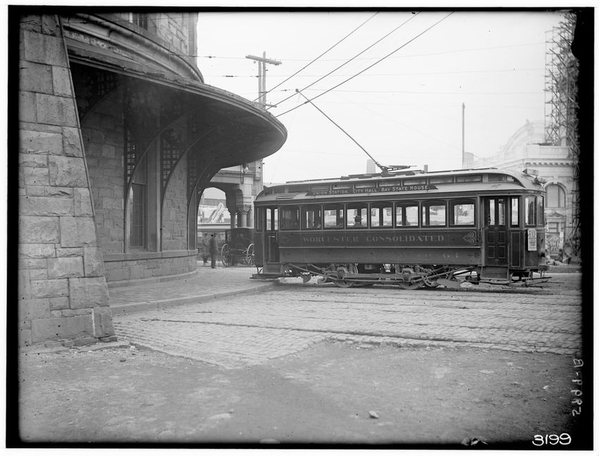 Trolley car at old Union Station, Worcester, Massachusetts, 5999-B