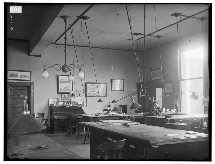 Interior of drafting room of Division Engineer's office in old Kneeland Street station, Boston, Massachusetts, 6011-B