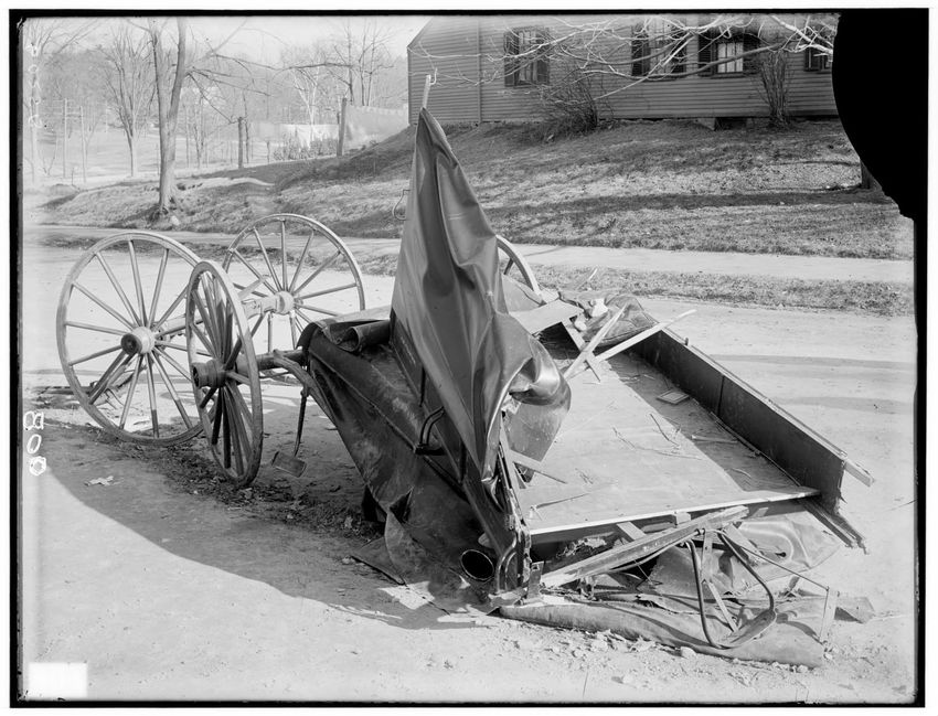 Demolished wagon struck by train at grade crossing in the Berkshires, Massachusetts, 6024-B