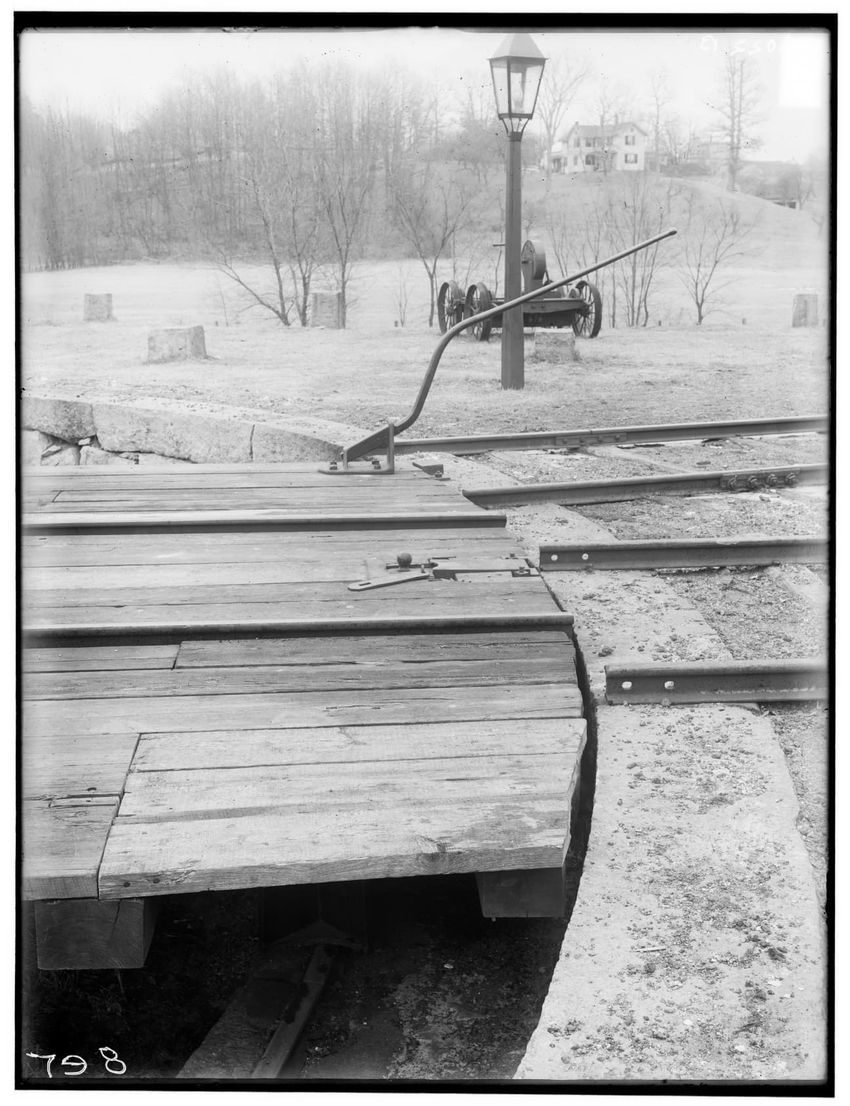 Detail of turntable, old hand car in background, Wayland, Massachusetts, 6022-B