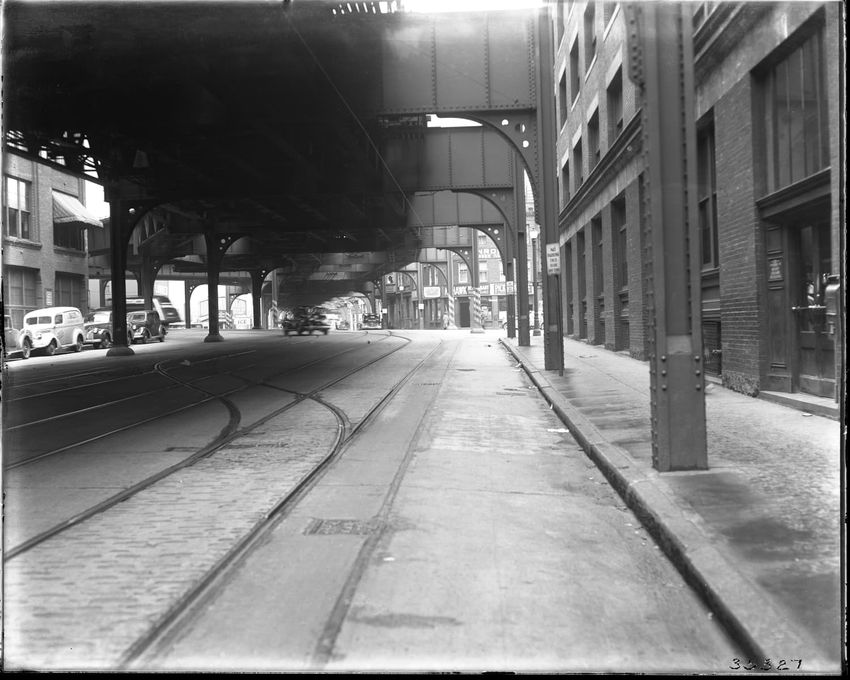 Bird's Eye View. Subway Construction, vehicles, The Old State House, etc.
