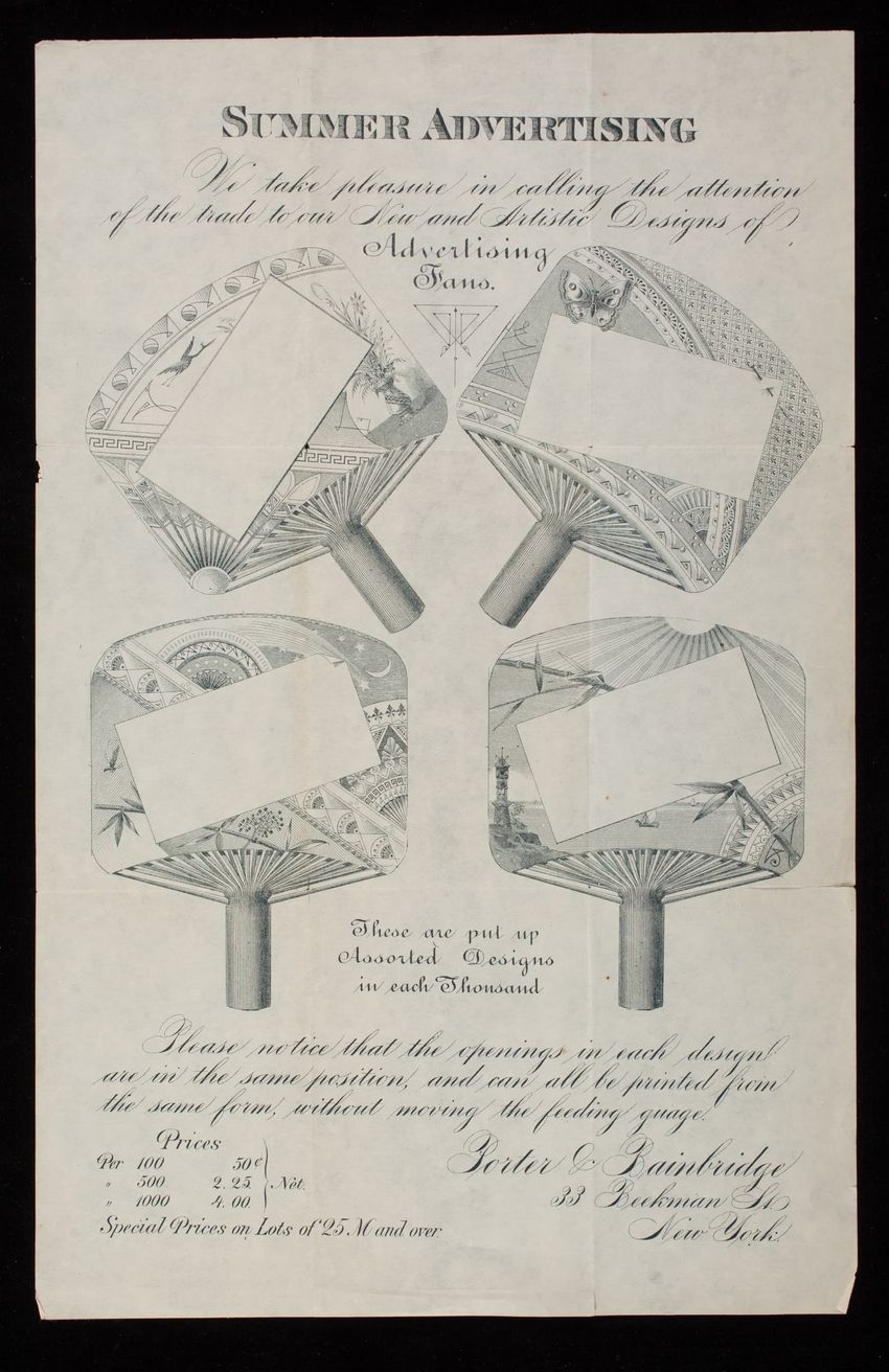 Summer advertising, advertising fans, Porter & Bainbridge, 33 Beekman Street, New York, New York