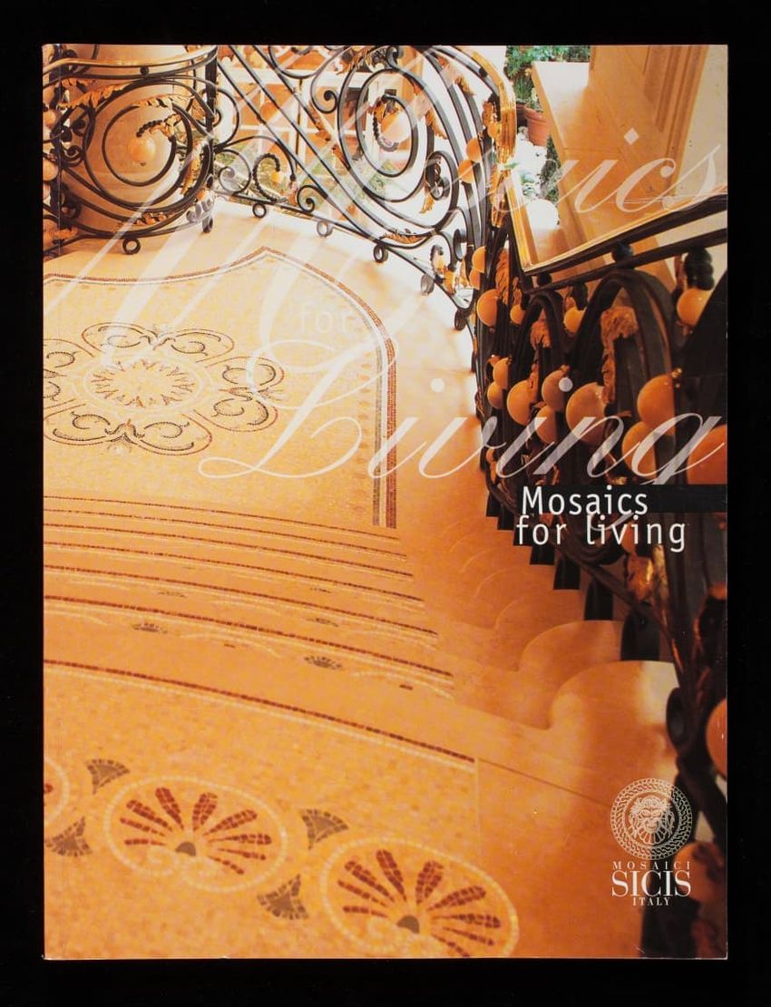 The incorporation of mosaic flooring sheets in different parts of the home is described in English and Italian text. A label on the back cover has text which reads "SICIS USA, Inc., 155 East 56th Street, New York, NY."