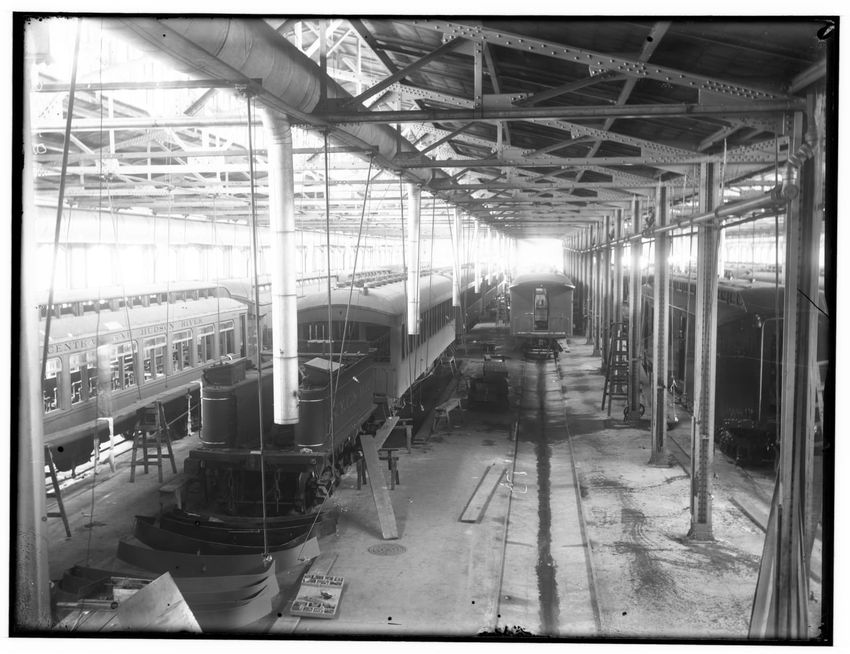 Allston Car Repair Shops, exterior view, demolished to mkae way for Massachusetts Turnpike, Brighton, Boston, Massachusetts, 5509-B