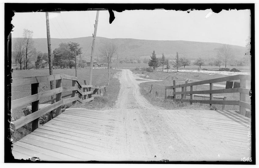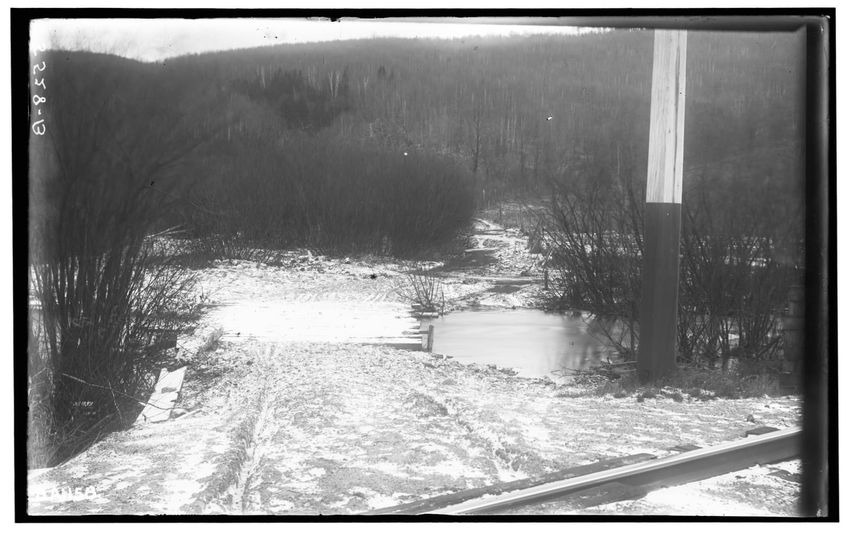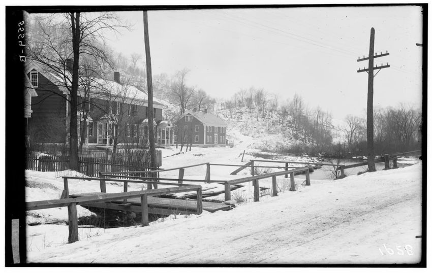 Flint's east crossing, looking north with wood bridge over stream, Canaan, New York, 5528-B