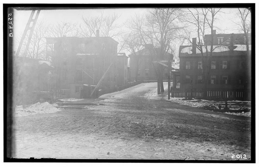 Plymouth Street, looking north, before grade crossing elimination, Worcester, Massachusetts, 5524-B