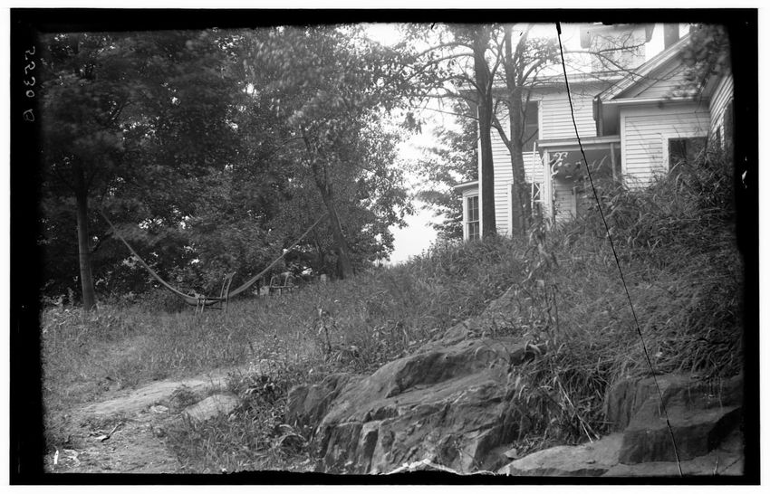 Yard of unidentified house with hammock, Chester, Massachusetts, 5530-B