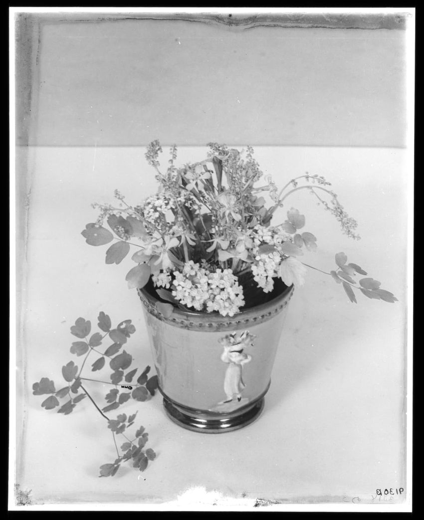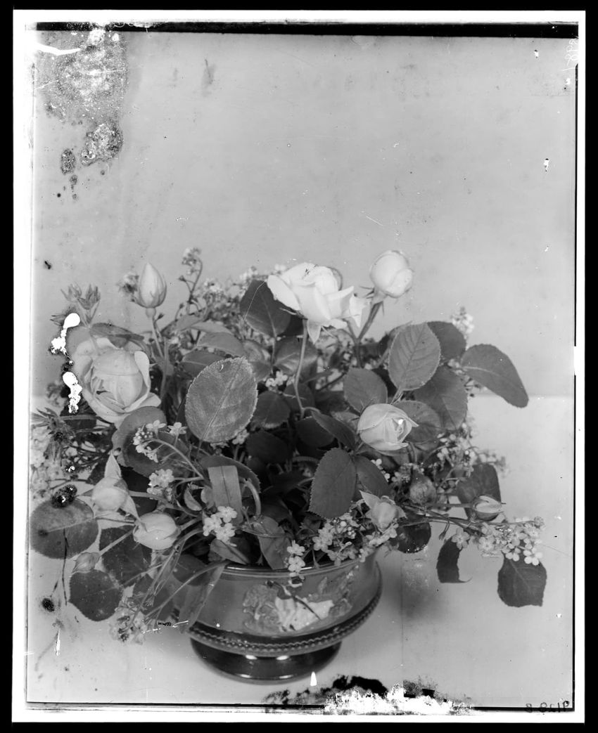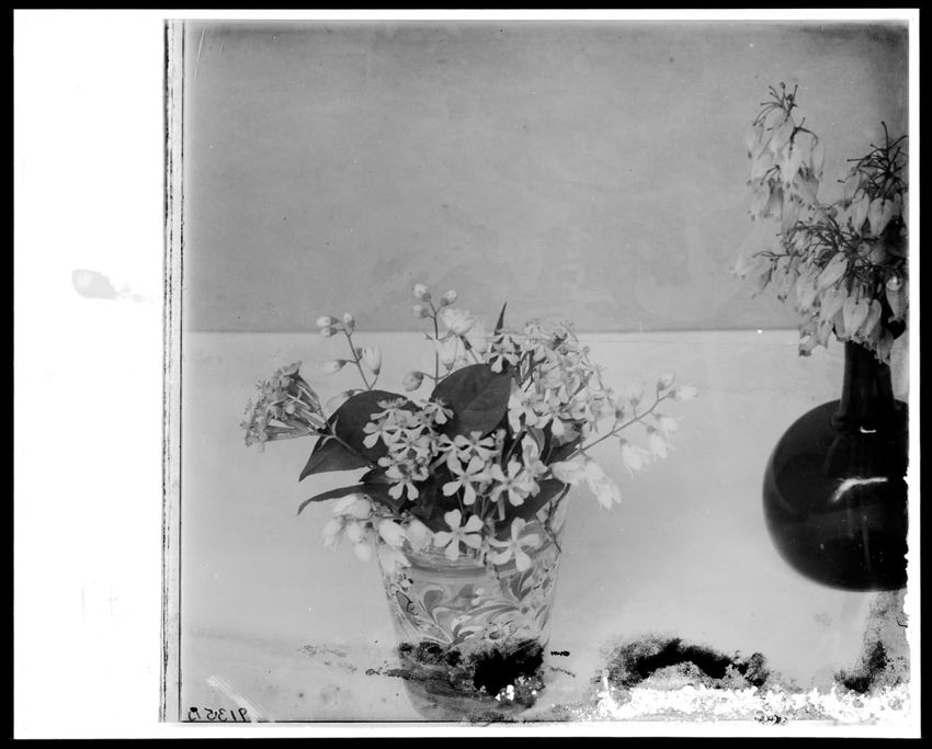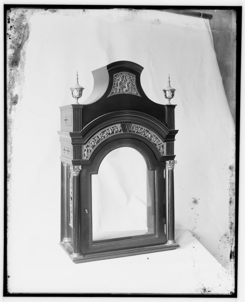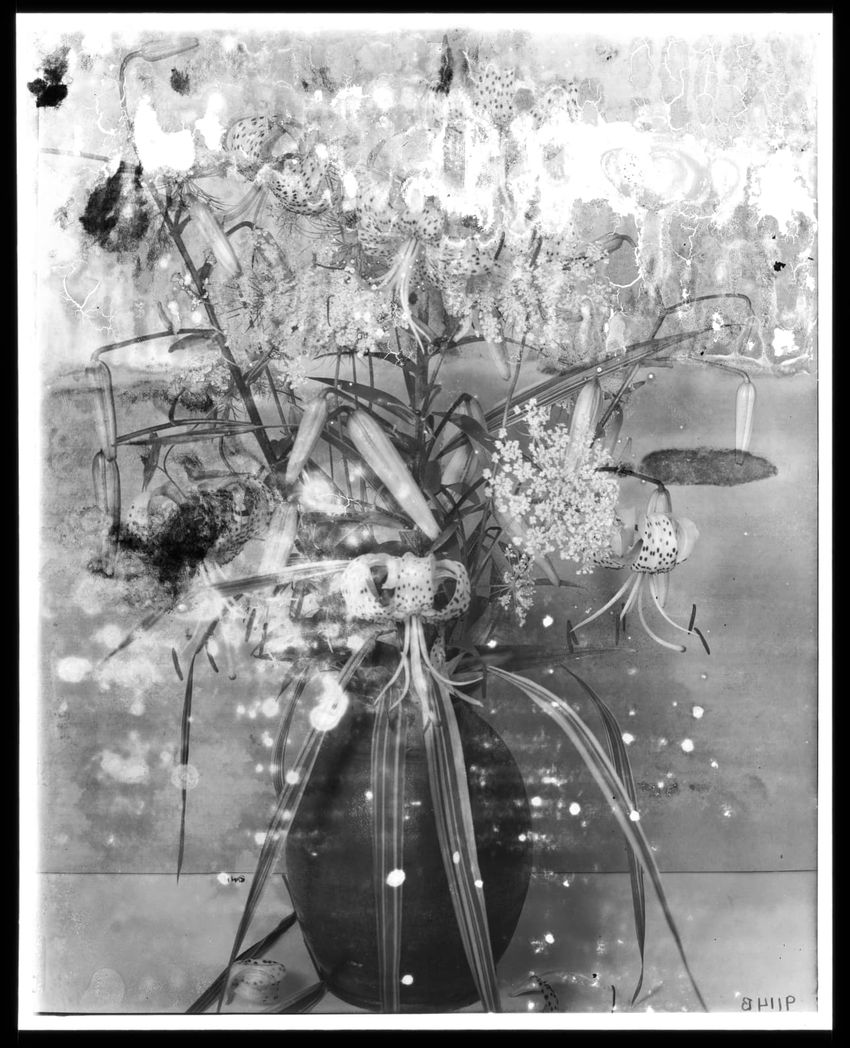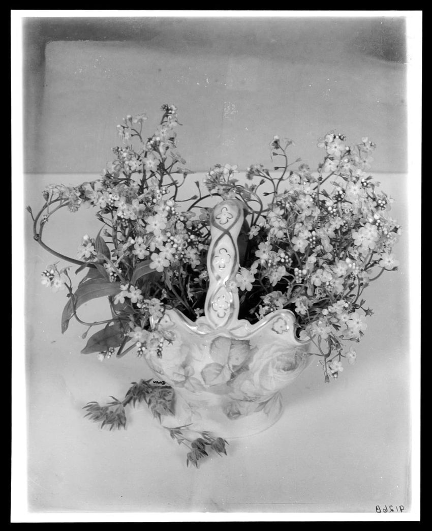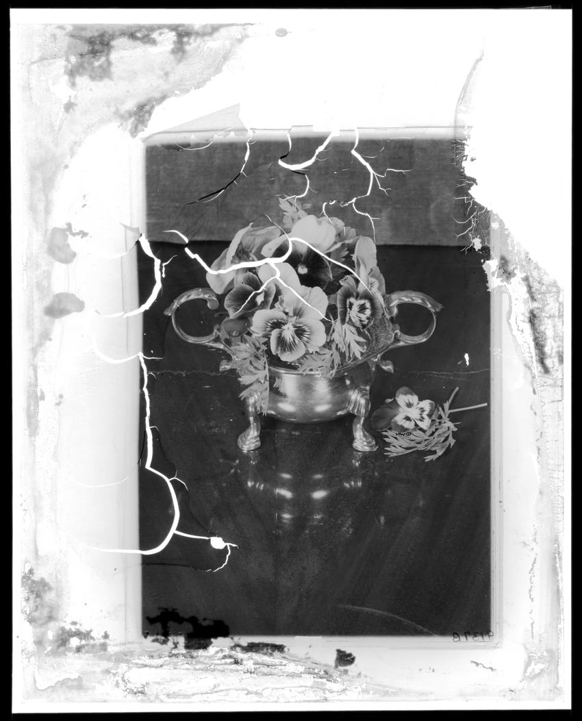 The image shows a wooded stream in Gilsum, New Hampshire, with water flowing over rocks. On the right side, there are several trees, including a prominent one with a lighter bark, set against dense foliage. The background features more trees that extend into the distance.