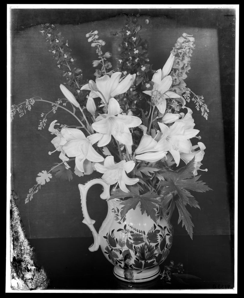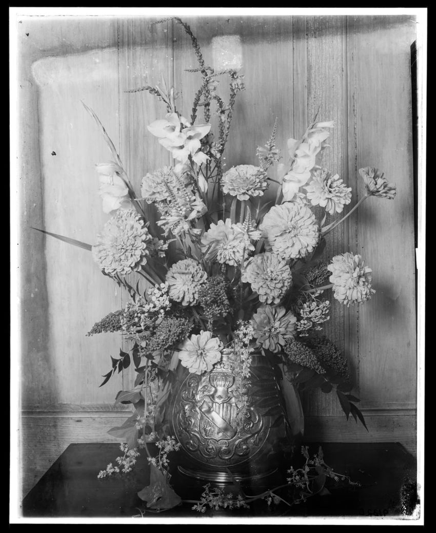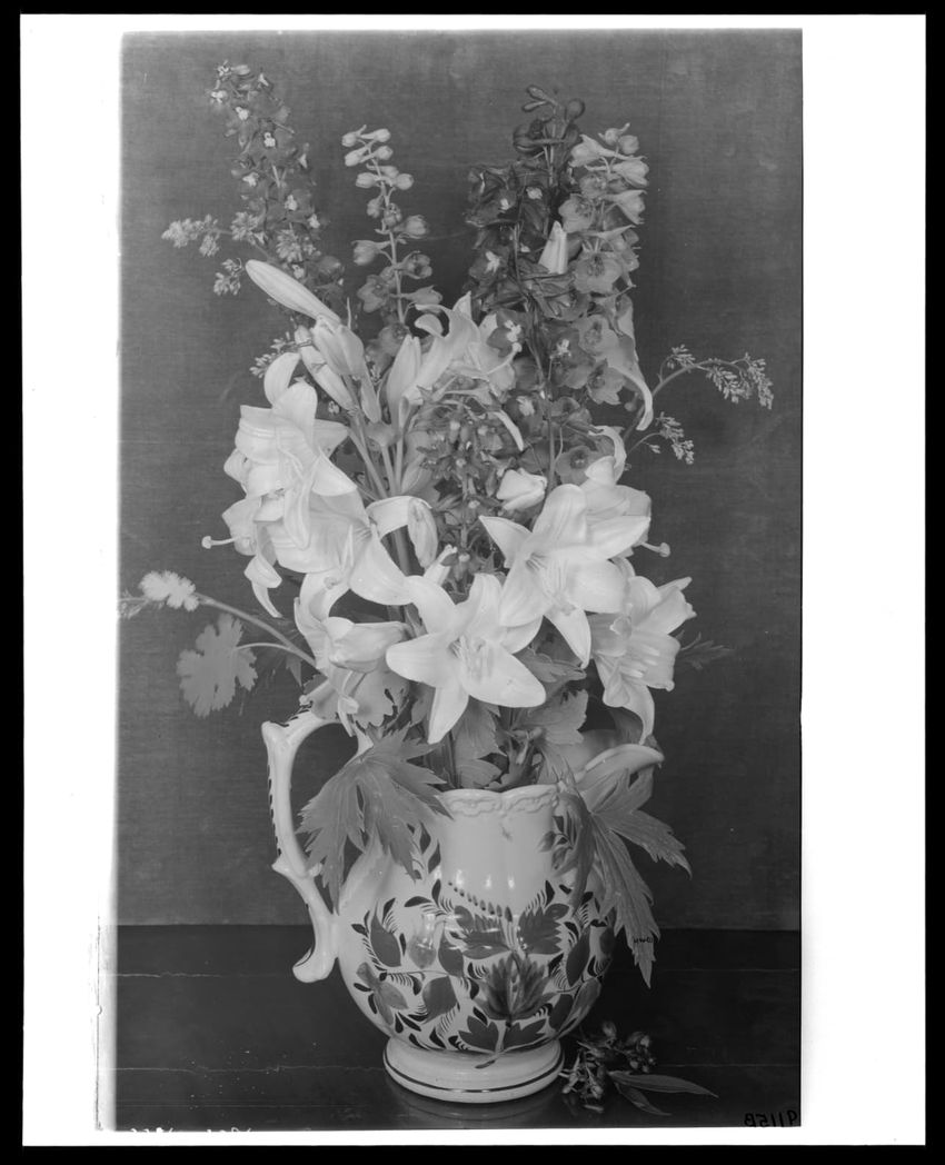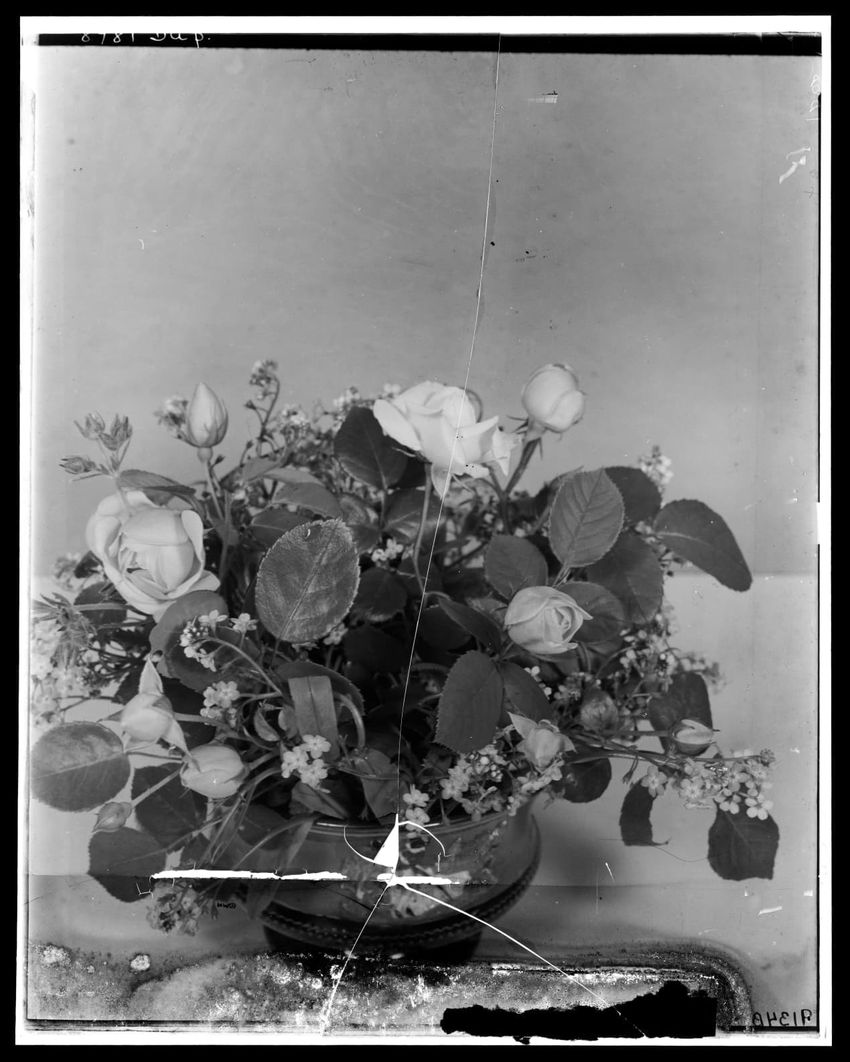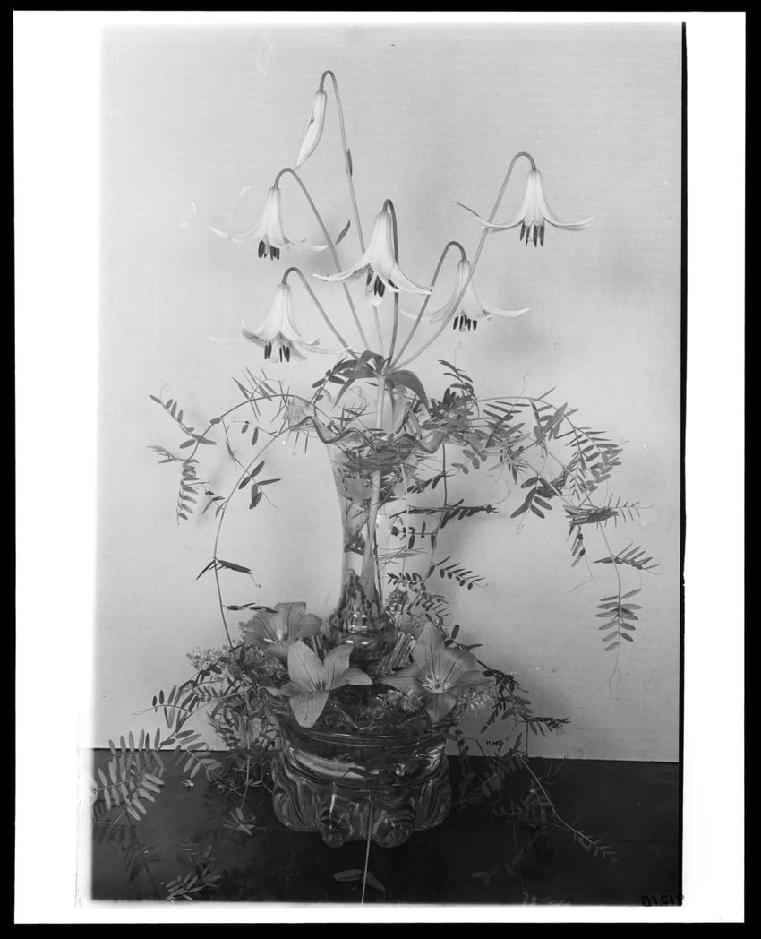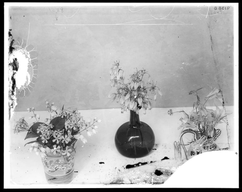 The image shows a wooded stream in Gilsum, New Hampshire, with water flowing over rocks. On the right side, there are several trees, including a prominent one with a lighter bark, set against dense foliage. The background features more trees that extend into the distance.