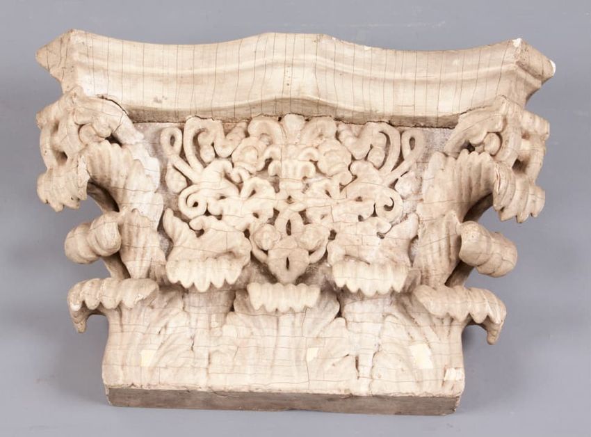 carving (processes), painting (coating), pine (wood), whitewashing (coating)