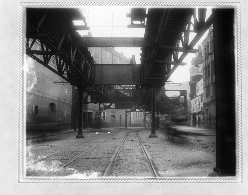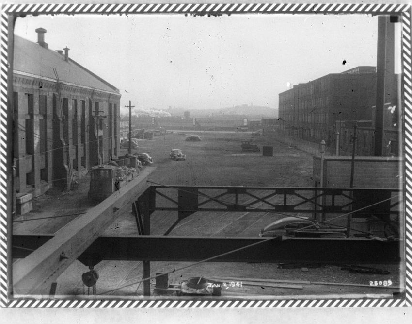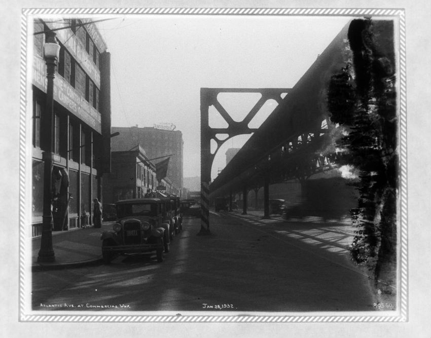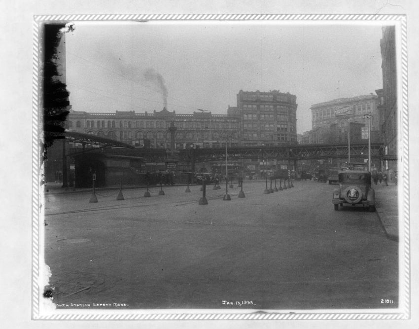 South Station structures can be seen with the Hotel Essex in the background on Atlantic Avenue.