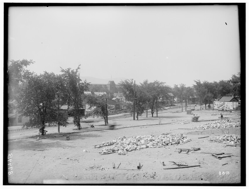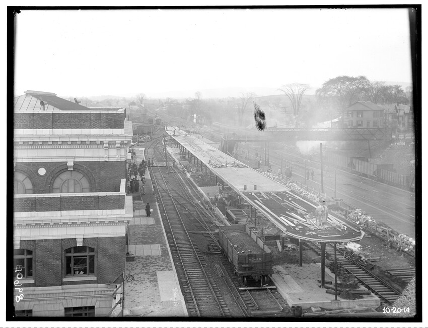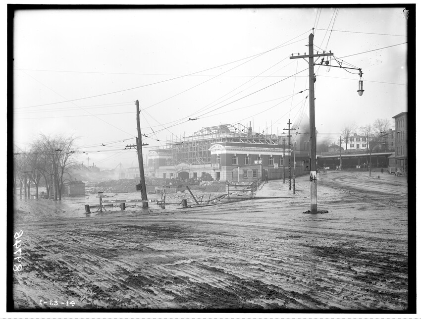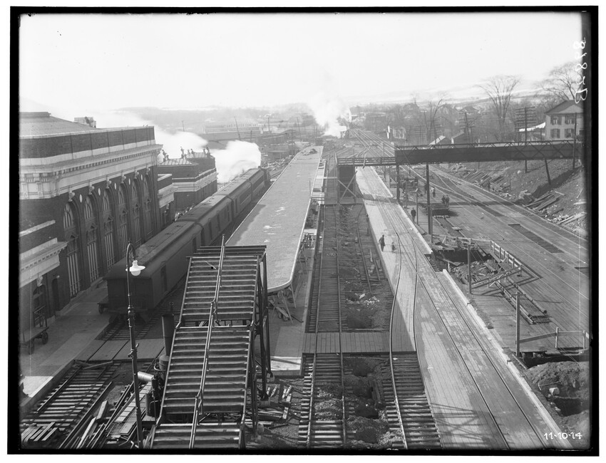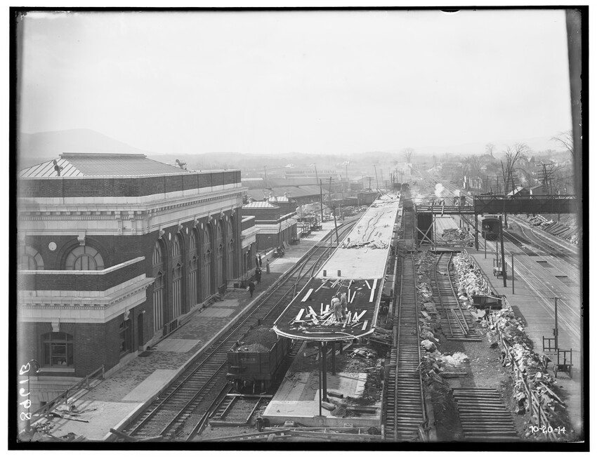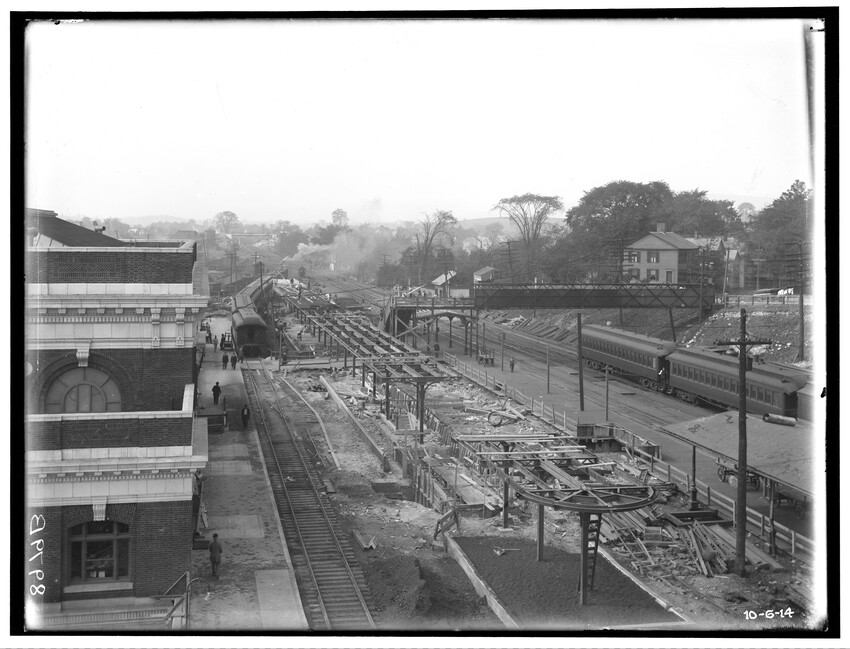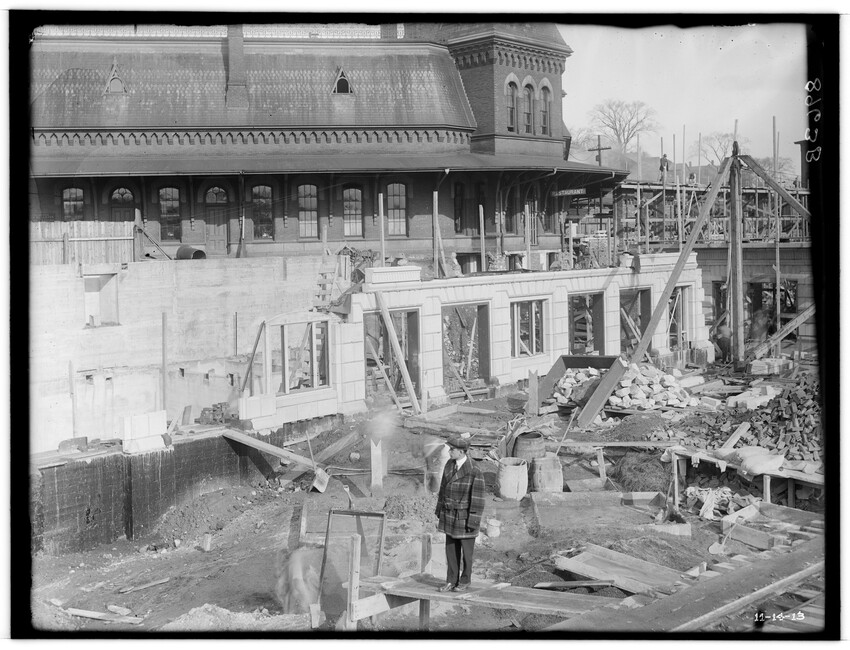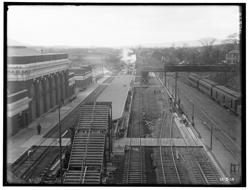 Construction of new passenger station, looking west at canopy and track area, Pittsfield, Massachusetts, 8960-B Construction of new passenger station, looking west at canopy and track area, Pittsfield, Massachusetts, 8961-B Construction of new passenger station, interior view of express building, old station on the left, Pittsfield, Massachusetts, 8962-B Construction of new passenger station, view of express building, front or south wall, Pittsfield, Massachusetts, 8963-B Construction of new passenger station, interior view of express building, second floor, Pittsfield, Massachusetts, 8964-B Construction of new passenger station, interior view of express building, second floor, Pittsfield, Massachusetts, 8965-B Construction of new passenger station, interior view of express building, Pittsfield, Massachusetts, 8966-B Construction of new passenger station, south east corner of main building, Pittsfield, Massachusetts, 8967-B Construction of new passenger station, front of main building, looking west, Pittsfield, Massachusetts, 8968-B Construction of new passenger station, interior view of waiting room, northeast corner, Pittsfield, Massachusetts, 8969-B Interior of new passenger station, the newsstand, Pittsfield, Massachusetts, 8970-B Interior of new passenger station, view of waiting room looking toward ticket office, Pittsfield, Massachusetts, 8971-B Interior of new passenger station, view of restaurant looking east, Pittsfield, Massachusetts, 8972-B Interior of new passenger station, view of east section of waiting room, Pittsfield, Massachusetts, 8973-B Construction of new passenger station, view from corner of West and New West Streets, old station in the background, Pittsfield, Massachusetts, 8974-B Construction of new passenger station, view from corner of West and New West Streets, old station in the background, Pittsfield, Massachusetts, 8975-B Construction of new passenger station, southwest of main building, old station in background, Pittsfield, Massachusetts, 8976-B Construction of new passenger station, southeast of main building, Pittsfield, Massachusetts, 8977-B Construction of new passenger station, southeast of main building, Pittsfield, Massachusetts, 8978-B Construction of new passenger station, looking west at canopy and track area, Pittsfield, Massachusetts, 8979-B Construction of new passenger station, looking west at canopy and track area, Pittsfield, Massachusetts, 8980-B New passenger station nearing completion, view looking west, Pittsfield, Massachusetts, 8981-B Construction of new passenger station, looking west at canopy and track area, Pittsfield, Massachusetts, 8982-B Construction of new passenger station, looking west at canopy and track area, Pittsfield, Massachusetts, 8983-B Construction of new passenger station, looking west at canopy and track area, Pittsfield, Massachusetts, 8985-B Construction of new passenger station, front (south) view of main building, Pittsfield, Massachusetts, 8986-B New railroad station upon completion, Pittsfield, Massachusetts, 8987-B Construction of new passenger station, looking east at canopy and track area, Pittsfield, Massachusetts, 8988-B Construction of new passenger station, southeast corner of main building, Pittsfield, Massachusetts, 8989-B Construction of new passenger station, interior of express building, old station in the background, Pittsfield, Massachusetts, 8990-B Construction of new passenger station, front (south) of main building, Pittsfield, Massachusetts, 8991-B Construction of new passenger station, east elevation of waiting room taken from east wing roof, Pittsfield, Massachusetts, 8992-B Construction of new passenger station, looking north east, Pittsfield, Massachusetts, 8993-B Main chimney of the new passenger station, roof and tower of old station in the background, Pittsfield, Massachusetts, 8994-B Construction of new passenger station, east roof of the new express building, Pittsfield, Massachusetts, 8995-B Construction of new passenger station, roof of the new express building, old station in the background, Pittsfield, Massachusetts, 8996-B Construction of new passenger station, interior of main subway, Pittsfield, Massachusetts, 8997-B New railroad station restaurant, taken from room in south west corner, Pittsfield, Massachusetts, 8998-B Construction of new passenger station, view taken in front of station, looking west, Pittsfield, Massachusetts, 8999-B Construction of new passenger station, start of foundation, old station on the right, Pittsfield, Massachusetts, 9000-B Construction of new passenger station, start of foundation, old station in the background, Pittsfield, Massachusetts, 9001-B Freight yards, looking east, new railroad station and freight house, Pittsfield, Massachusetts, 9002-B Construction of new passenger station, express building, north side, Pittsfield, Massachusetts, 9003-B Construction of new passenger station, south wall of the main building, Pittsfield, Massachusetts, 9004-B Construction of new passenger station, south east corner of the main building, Pittsfield, Massachusetts, 9005-B Construction of new passenger station, south east corner of the main building, old station in the background, Pittsfield, Massachusetts, 9006-B Construction of new passenger station, Pittsfield, Massachusetts, 9007-B Railroad crossing, 400 feet from crossing, looking north, Lanesborough, Massachusetts, 8608-B Locomotive #221, 4-6-0 passenger, 8609-B Locomotive #1250, left side, 8610-B