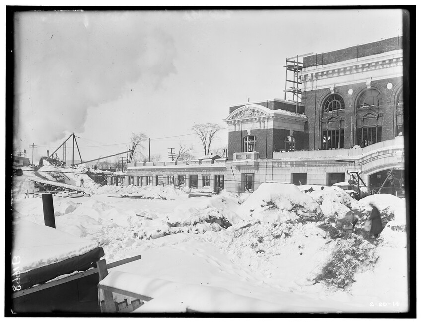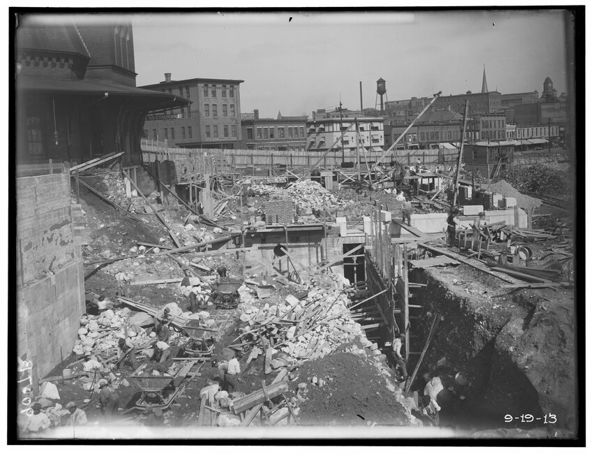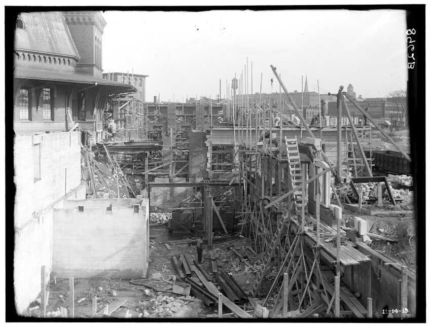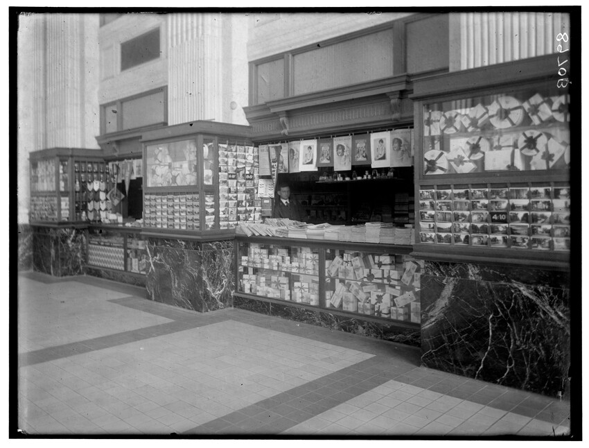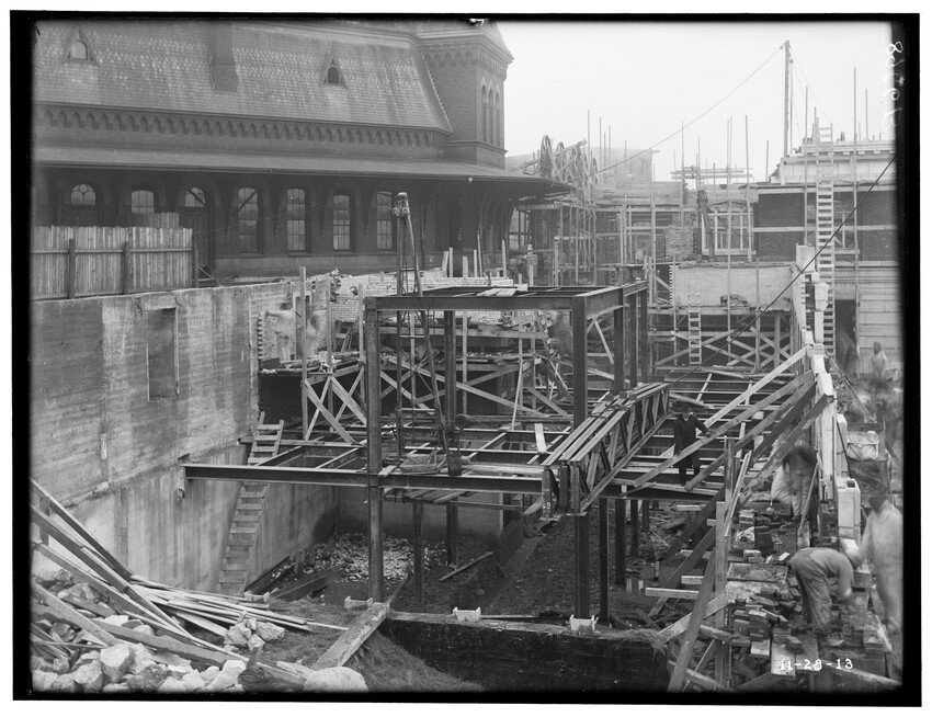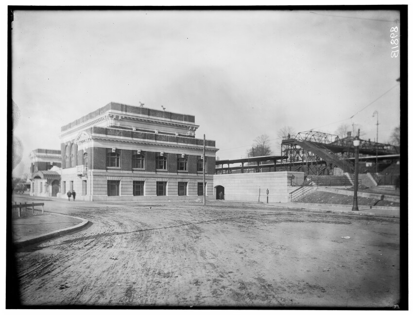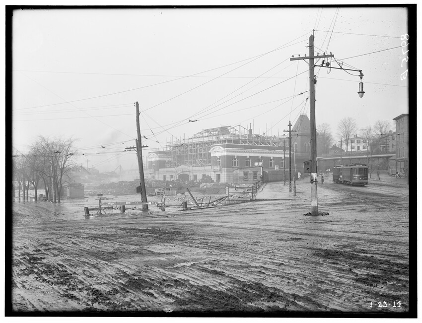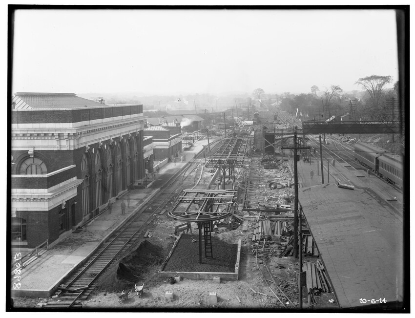 Construction of new passenger station, looking west at canopy and track area, Pittsfield, Massachusetts, 8960-B Construction of new passenger station, looking west at canopy and track area, Pittsfield, Massachusetts, 8961-B Construction of new passenger station, interior view of express building, old station on the left, Pittsfield, Massachusetts, 8962-B Construction of new passenger station, view of express building, front or south wall, Pittsfield, Massachusetts, 8963-B Construction of new passenger station, interior view of express building, second floor, Pittsfield, Massachusetts, 8964-B Construction of new passenger station, interior view of express building, second floor, Pittsfield, Massachusetts, 8965-B Construction of new passenger station, interior view of express building, Pittsfield, Massachusetts, 8966-B Construction of new passenger station, south east corner of main building, Pittsfield, Massachusetts, 8967-B Construction of new passenger station, front of main building, looking west, Pittsfield, Massachusetts, 8968-B Construction of new passenger station, interior view of waiting room, northeast corner, Pittsfield, Massachusetts, 8969-B Interior of new passenger station, the newsstand, Pittsfield, Massachusetts, 8970-B Interior of new passenger station, view of waiting room looking toward ticket office, Pittsfield, Massachusetts, 8971-B Interior of new passenger station, view of restaurant looking east, Pittsfield, Massachusetts, 8972-B Interior of new passenger station, view of east section of waiting room, Pittsfield, Massachusetts, 8973-B Construction of new passenger station, view from corner of West and New West Streets, old station in the background, Pittsfield, Massachusetts, 8974-B Construction of new passenger station, view from corner of West and New West Streets, old station in the background, Pittsfield, Massachusetts, 8975-B Construction of new passenger station, southwest of main building, old station in background, Pittsfield, Massachusetts, 8976-B Construction of new passenger station, southeast of main building, Pittsfield, Massachusetts, 8977-B Construction of new passenger station, southeast of main building, Pittsfield, Massachusetts, 8978-B Construction of new passenger station, looking west at canopy and track area, Pittsfield, Massachusetts, 8979-B Construction of new passenger station, looking west at canopy and track area, Pittsfield, Massachusetts, 8980-B New passenger station nearing completion, view looking west, Pittsfield, Massachusetts, 8981-B Construction of new passenger station, looking west at canopy and track area, Pittsfield, Massachusetts, 8982-B Construction of new passenger station, looking west at canopy and track area, Pittsfield, Massachusetts, 8983-B Construction of new passenger station, looking west at canopy and track area, Pittsfield, Massachusetts, 8985-B Construction of new passenger station, front (south) view of main building, Pittsfield, Massachusetts, 8986-B New railroad station upon completion, Pittsfield, Massachusetts, 8987-B Construction of new passenger station, looking east at canopy and track area, Pittsfield, Massachusetts, 8988-B Construction of new passenger station, southeast corner of main building, Pittsfield, Massachusetts, 8989-B Construction of new passenger station, interior of express building, old station in the background, Pittsfield, Massachusetts, 8990-B Construction of new passenger station, front (south) of main building, Pittsfield, Massachusetts, 8991-B Construction of new passenger station, east elevation of waiting room taken from east wing roof, Pittsfield, Massachusetts, 8992-B Construction of new passenger station, looking north east, Pittsfield, Massachusetts, 8993-B Main chimney of the new passenger station, roof and tower of old station in the background, Pittsfield, Massachusetts, 8994-B Construction of new passenger station, east roof of the new express building, Pittsfield, Massachusetts, 8995-B Construction of new passenger station, roof of the new express building, old station in the background, Pittsfield, Massachusetts, 8996-B Construction of new passenger station, interior of main subway, Pittsfield, Massachusetts, 8997-B New railroad station restaurant, taken from room in south west corner, Pittsfield, Massachusetts, 8998-B Construction of new passenger station, view taken in front of station, looking west, Pittsfield, Massachusetts, 8999-B Construction of new passenger station, start of foundation, old station on the right, Pittsfield, Massachusetts, 9000-B Construction of new passenger station, start of foundation, old station in the background, Pittsfield, Massachusetts, 9001-B Freight yards, looking east, new railroad station and freight house, Pittsfield, Massachusetts, 9002-B Construction of new passenger station, express building, north side, Pittsfield, Massachusetts, 9003-B Construction of new passenger station, south wall of the main building, Pittsfield, Massachusetts, 9004-B Construction of new passenger station, south east corner of the main building, Pittsfield, Massachusetts, 9005-B Construction of new passenger station, south east corner of the main building, old station in the background, Pittsfield, Massachusetts, 9006-B Construction of new passenger station, Pittsfield, Massachusetts, 9007-B Railroad crossing, 400 feet from crossing, looking north, Lanesborough, Massachusetts, 8608-B Locomotive #221, 4-6-0 passenger, 8609-B Locomotive #1250, left side, 8610-B