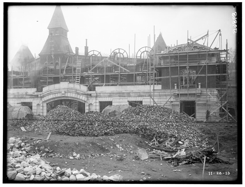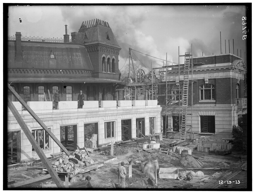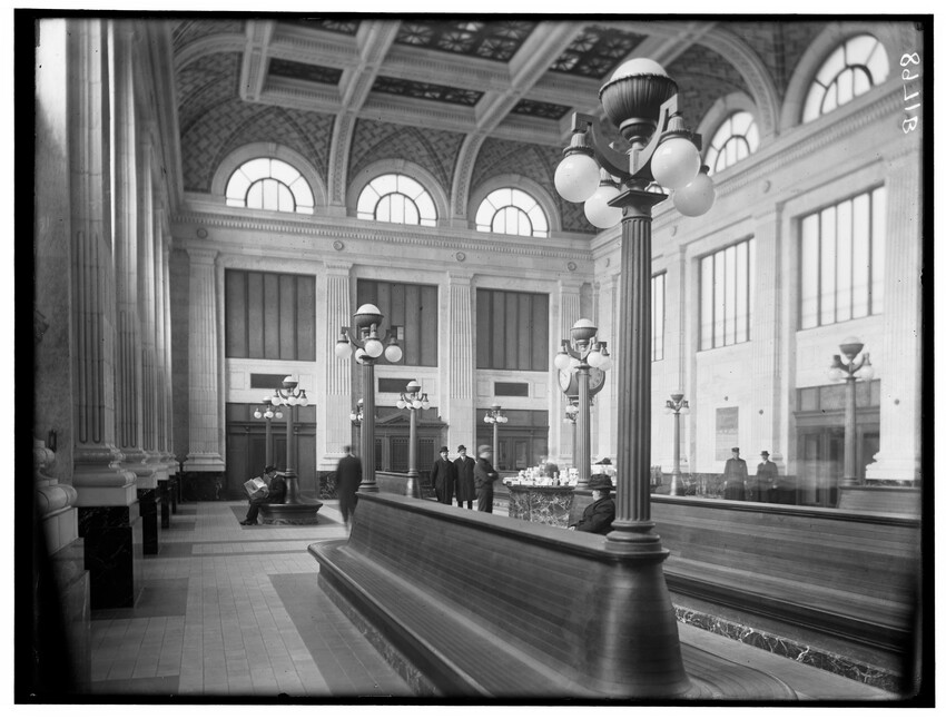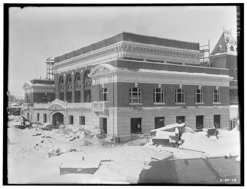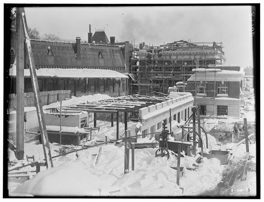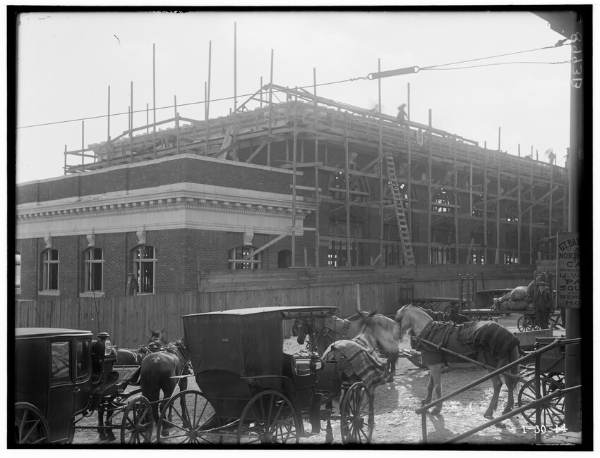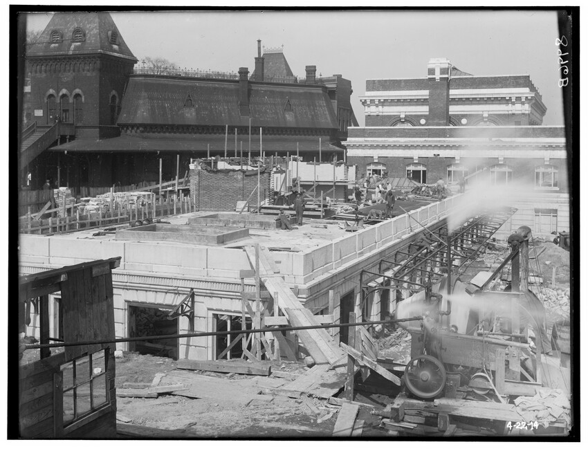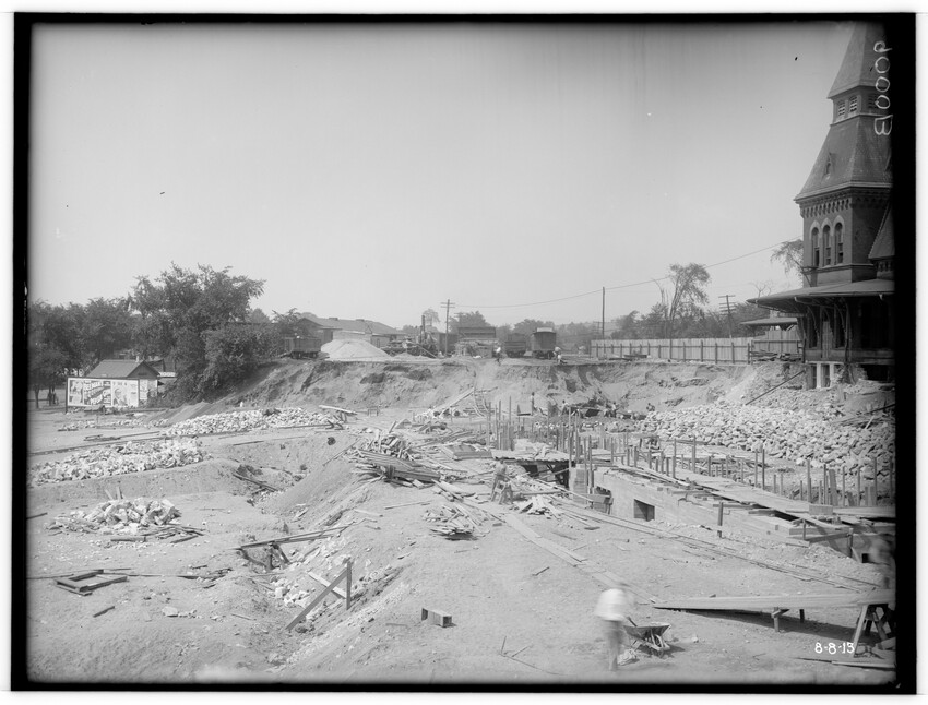 Construction of new passenger station, looking west at canopy and track area, Pittsfield, Massachusetts, 8960-B Construction of new passenger station, looking west at canopy and track area, Pittsfield, Massachusetts, 8961-B Construction of new passenger station, interior view of express building, old station on the left, Pittsfield, Massachusetts, 8962-B Construction of new passenger station, view of express building, front or south wall, Pittsfield, Massachusetts, 8963-B Construction of new passenger station, interior view of express building, second floor, Pittsfield, Massachusetts, 8964-B Construction of new passenger station, interior view of express building, second floor, Pittsfield, Massachusetts, 8965-B Construction of new passenger station, interior view of express building, Pittsfield, Massachusetts, 8966-B Construction of new passenger station, south east corner of main building, Pittsfield, Massachusetts, 8967-B Construction of new passenger station, front of main building, looking west, Pittsfield, Massachusetts, 8968-B Construction of new passenger station, interior view of waiting room, northeast corner, Pittsfield, Massachusetts, 8969-B Interior of new passenger station, the newsstand, Pittsfield, Massachusetts, 8970-B Interior of new passenger station, view of waiting room looking toward ticket office, Pittsfield, Massachusetts, 8971-B Interior of new passenger station, view of restaurant looking east, Pittsfield, Massachusetts, 8972-B Interior of new passenger station, view of east section of waiting room, Pittsfield, Massachusetts, 8973-B Construction of new passenger station, view from corner of West and New West Streets, old station in the background, Pittsfield, Massachusetts, 8974-B Construction of new passenger station, view from corner of West and New West Streets, old station in the background, Pittsfield, Massachusetts, 8975-B Construction of new passenger station, southwest of main building, old station in background, Pittsfield, Massachusetts, 8976-B Construction of new passenger station, southeast of main building, Pittsfield, Massachusetts, 8977-B Construction of new passenger station, southeast of main building, Pittsfield, Massachusetts, 8978-B Construction of new passenger station, looking west at canopy and track area, Pittsfield, Massachusetts, 8979-B Construction of new passenger station, looking west at canopy and track area, Pittsfield, Massachusetts, 8980-B New passenger station nearing completion, view looking west, Pittsfield, Massachusetts, 8981-B Construction of new passenger station, looking west at canopy and track area, Pittsfield, Massachusetts, 8982-B Construction of new passenger station, looking west at canopy and track area, Pittsfield, Massachusetts, 8983-B Construction of new passenger station, looking west at canopy and track area, Pittsfield, Massachusetts, 8985-B Construction of new passenger station, front (south) view of main building, Pittsfield, Massachusetts, 8986-B New railroad station upon completion, Pittsfield, Massachusetts, 8987-B Construction of new passenger station, looking east at canopy and track area, Pittsfield, Massachusetts, 8988-B Construction of new passenger station, southeast corner of main building, Pittsfield, Massachusetts, 8989-B Construction of new passenger station, interior of express building, old station in the background, Pittsfield, Massachusetts, 8990-B Construction of new passenger station, front (south) of main building, Pittsfield, Massachusetts, 8991-B Construction of new passenger station, east elevation of waiting room taken from east wing roof, Pittsfield, Massachusetts, 8992-B Construction of new passenger station, looking north east, Pittsfield, Massachusetts, 8993-B Main chimney of the new passenger station, roof and tower of old station in the background, Pittsfield, Massachusetts, 8994-B Construction of new passenger station, east roof of the new express building, Pittsfield, Massachusetts, 8995-B Construction of new passenger station, roof of the new express building, old station in the background, Pittsfield, Massachusetts, 8996-B Construction of new passenger station, interior of main subway, Pittsfield, Massachusetts, 8997-B New railroad station restaurant, taken from room in south west corner, Pittsfield, Massachusetts, 8998-B Construction of new passenger station, view taken in front of station, looking west, Pittsfield, Massachusetts, 8999-B Construction of new passenger station, start of foundation, old station on the right, Pittsfield, Massachusetts, 9000-B Construction of new passenger station, start of foundation, old station in the background, Pittsfield, Massachusetts, 9001-B Freight yards, looking east, new railroad station and freight house, Pittsfield, Massachusetts, 9002-B Construction of new passenger station, express building, north side, Pittsfield, Massachusetts, 9003-B Construction of new passenger station, south wall of the main building, Pittsfield, Massachusetts, 9004-B Construction of new passenger station, south east corner of the main building, Pittsfield, Massachusetts, 9005-B Construction of new passenger station, south east corner of the main building, old station in the background, Pittsfield, Massachusetts, 9006-B Construction of new passenger station, Pittsfield, Massachusetts, 9007-B Railroad crossing, 400 feet from crossing, looking north, Lanesborough, Massachusetts, 8608-B Locomotive #221, 4-6-0 passenger, 8609-B Locomotive #1250, left side, 8610-B