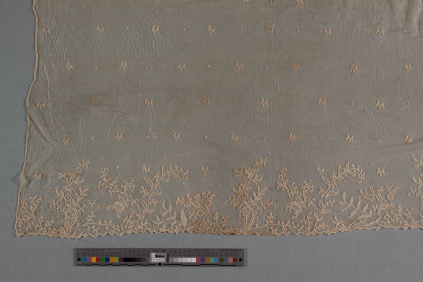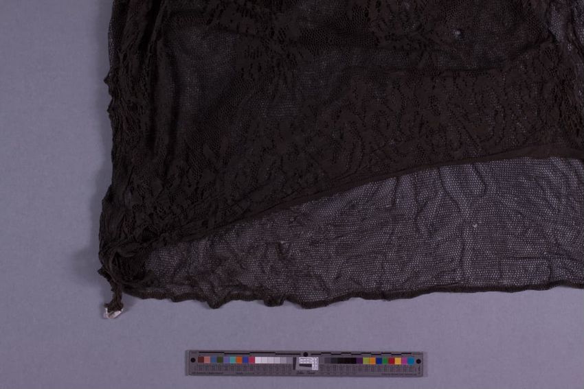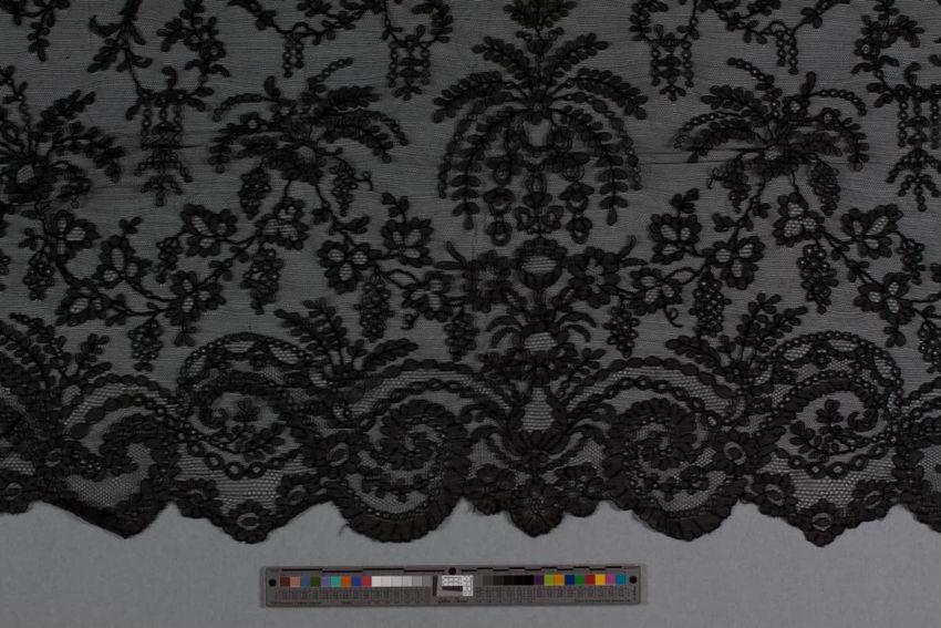 Chantilly lace, ivory (tooth component), leather, satin, silk (textile), taffeta