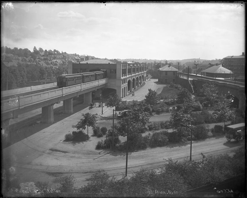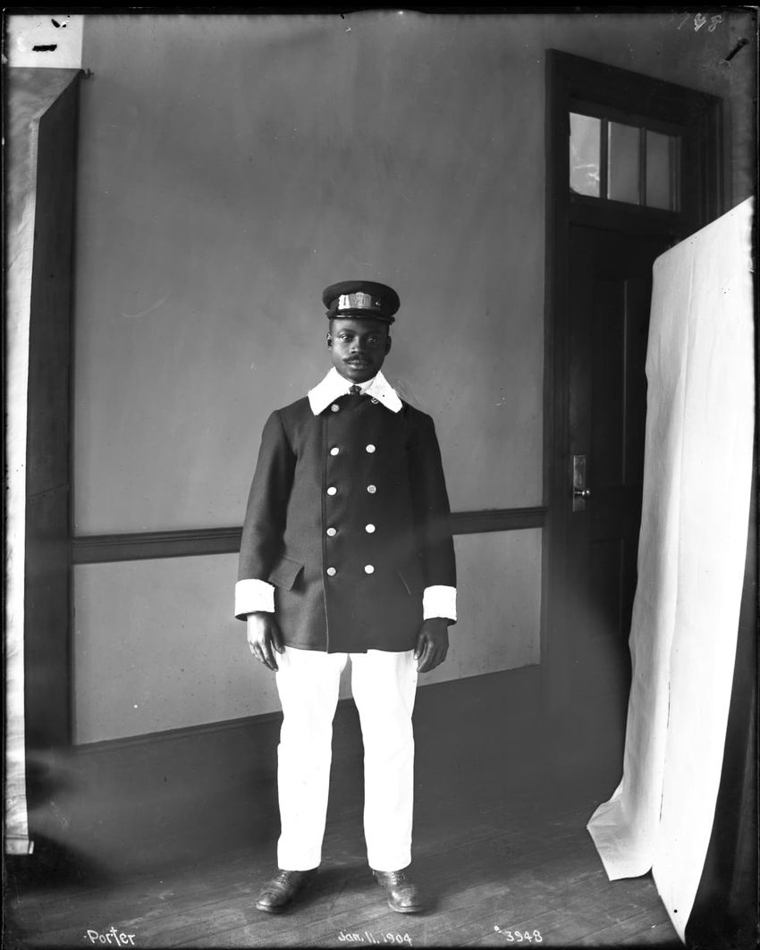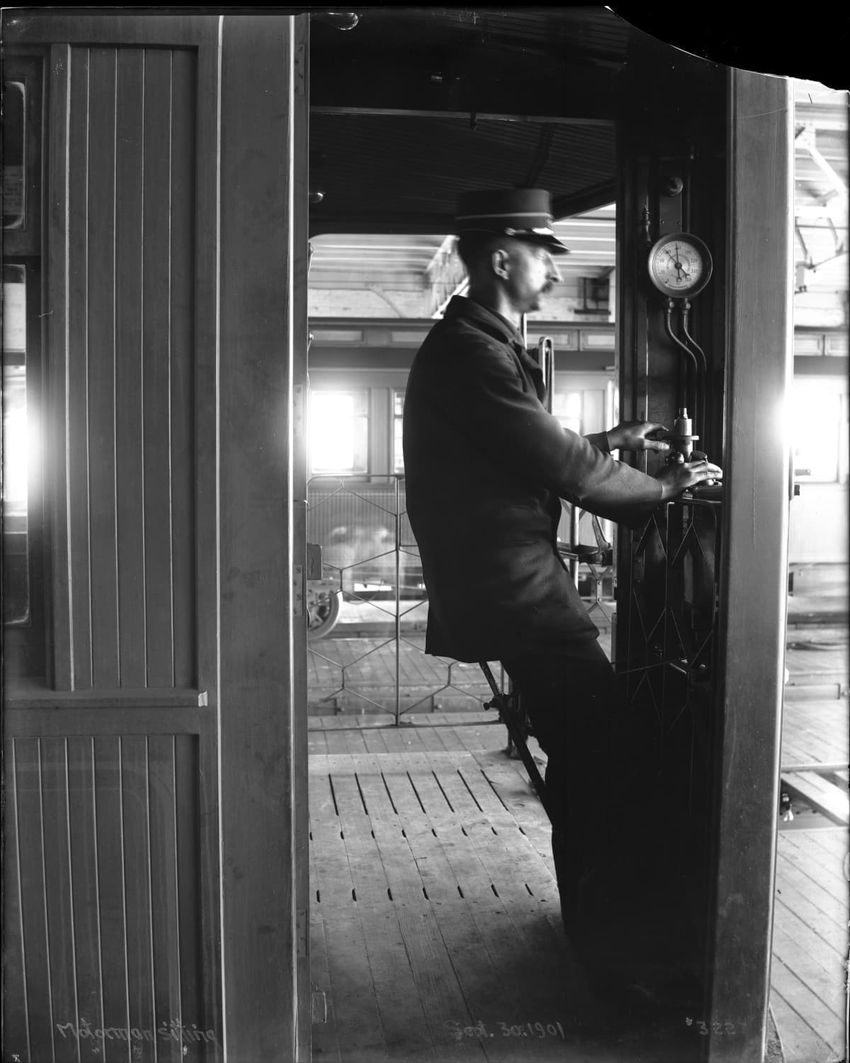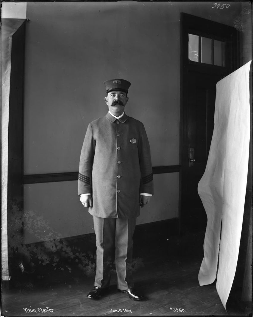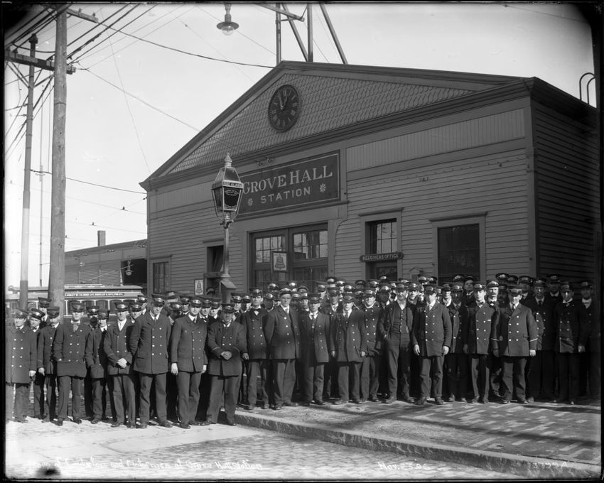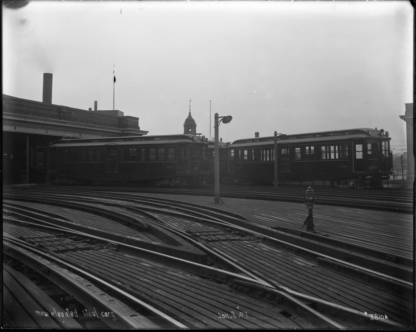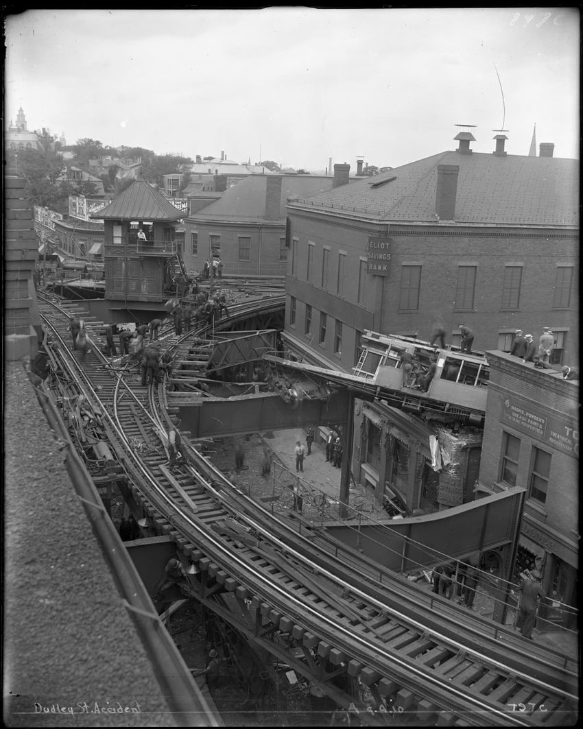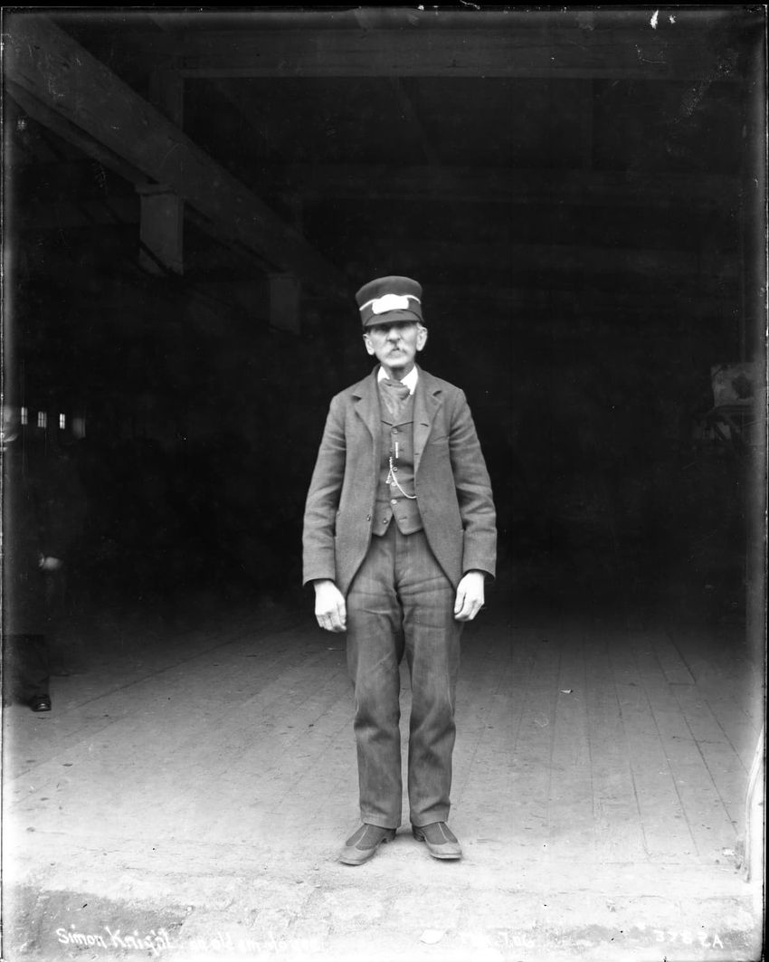 Transfer Market; Sing Lee, laundry; Fire Station, Hose House #1 and Chemical Engine #1 (140 Washington Street); P. J. Burns, Horse Shoe Forge; J. H. Pineo, carpenter and builder. Shops, signs, horse + wagons, people. Neg. Edge Peeled; corner 'chipped.' 6 1/2 X 8 1/2.
