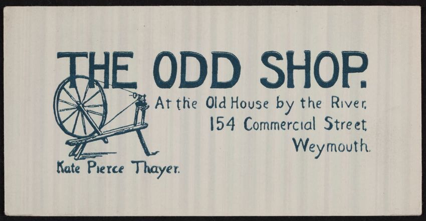 Trade card for The Odd Shop, at the Old House by the river, 154 Commercial Street, Weymouth, Mass., 1924