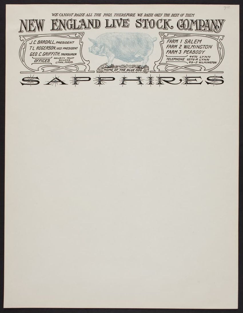 Letterhead for the New England Live Stock Company, Lynn, Mass., undated