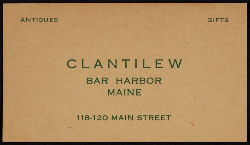 Business card for Clantilew, 118-120 Main Street, Bar Harbor Maine, undated