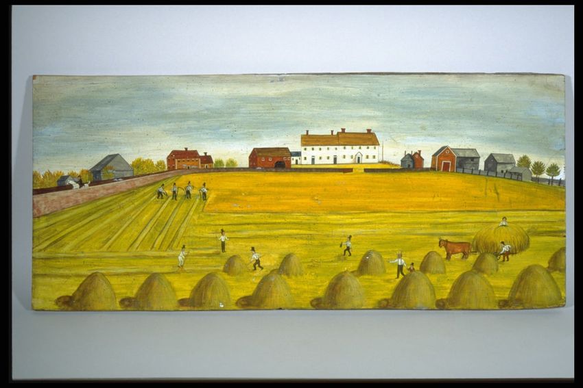 pine (wood), painting (coating), carving (processes), iron (metal), nailing