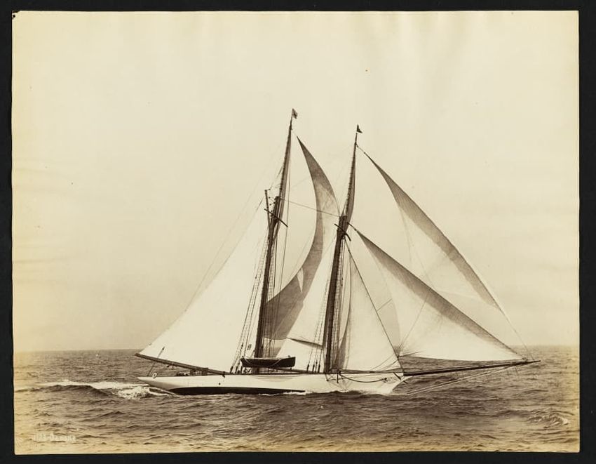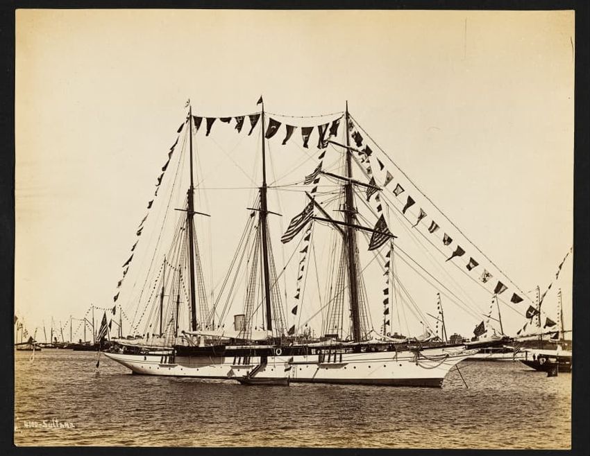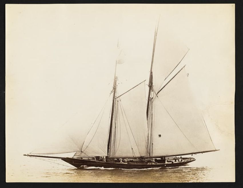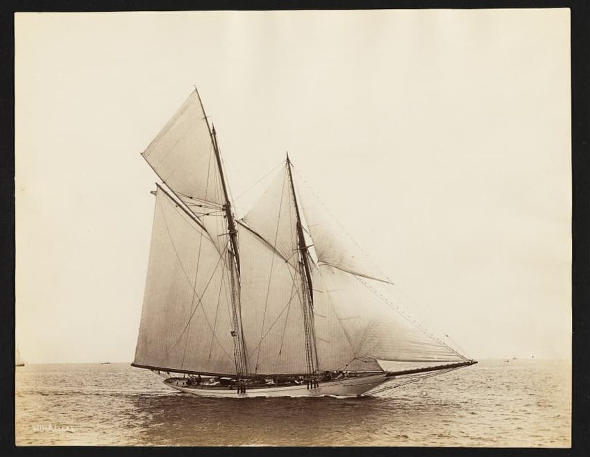 The schooner Fleur de Lis was built by Van Dusen in 1865 with LOA 82'6" for Dudley Hall of Boston.