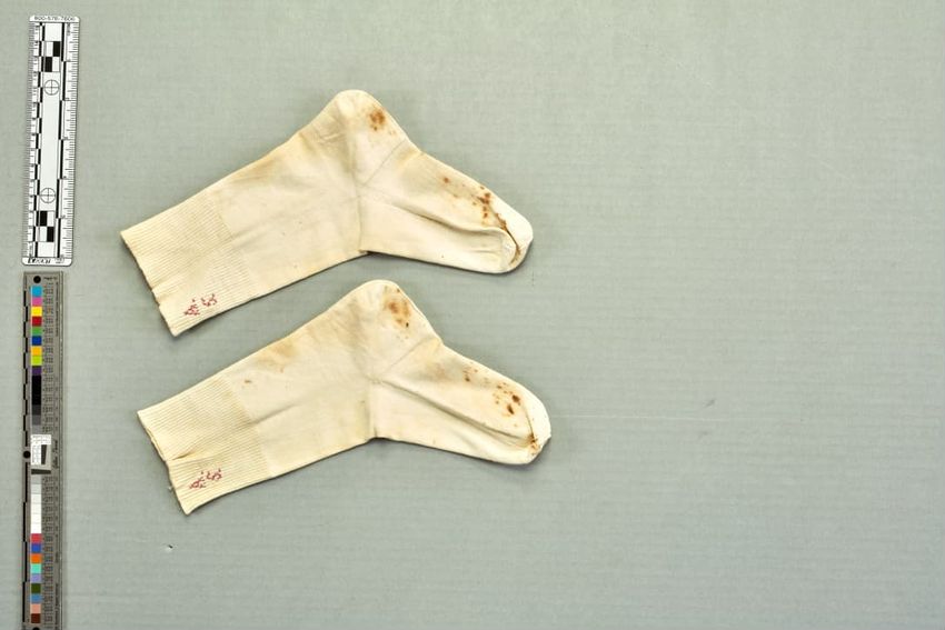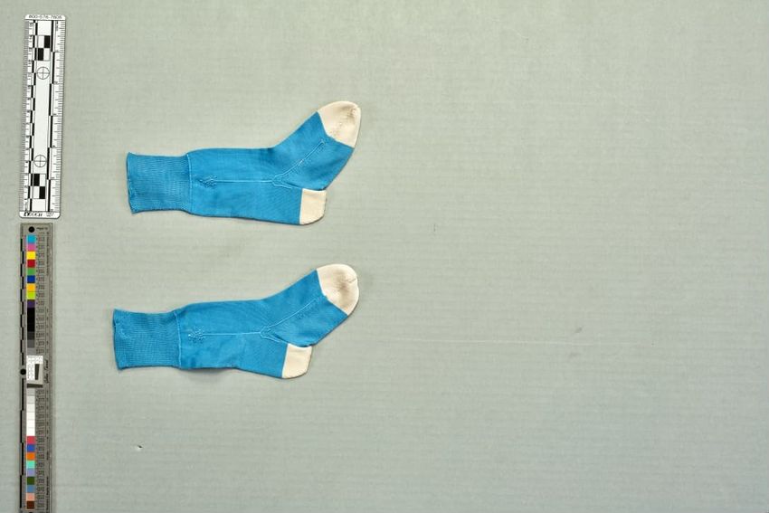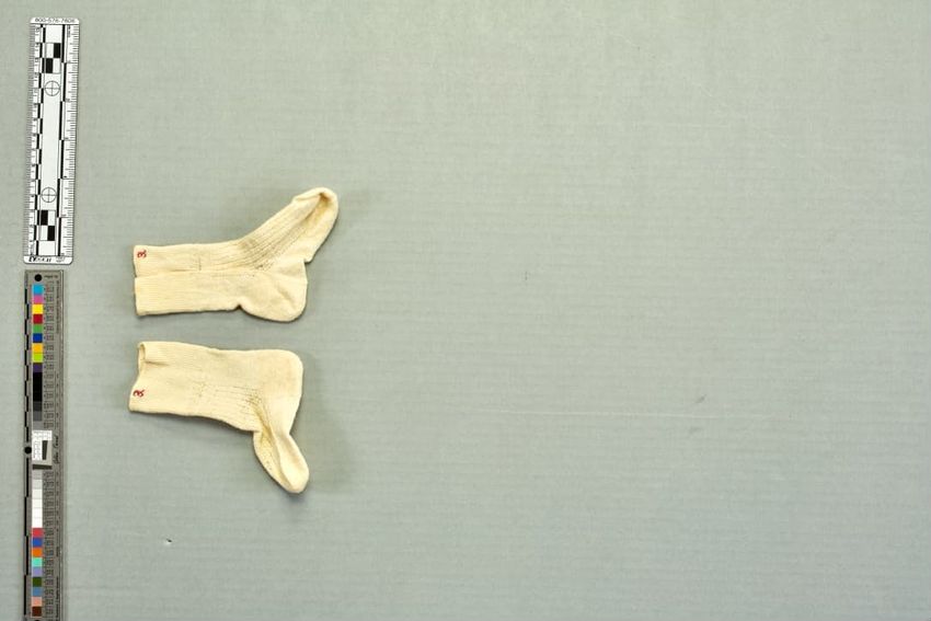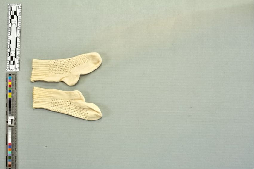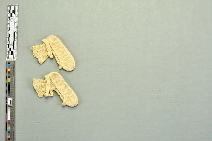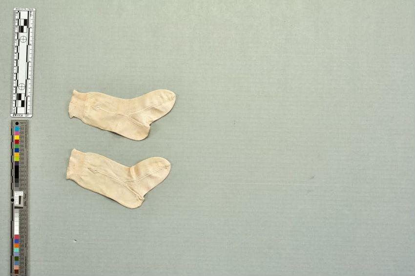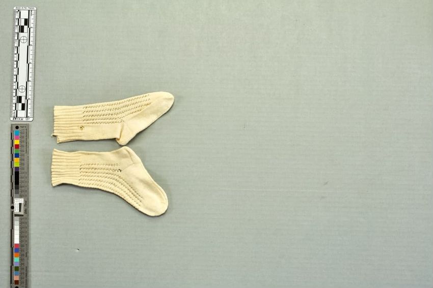 Boy's shirt of cream-colored cotton with a deep square linen collar trimmed with a band of needle lace, short sleeves set with underarm triangular gussets and deep vents at each side seam, finished with small stabilizing plackets.