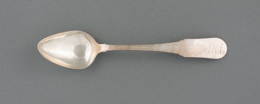 Mother of pearl sticks, carved and pierced with scrolls and flowers, with center medallion with man and woman in 18th Century dress; paper leaf painted with scene of shepherd and shepherdess, sheep, men and women in 18th C. costume; on other side, scene of two men and three women in 18th C. costume ...