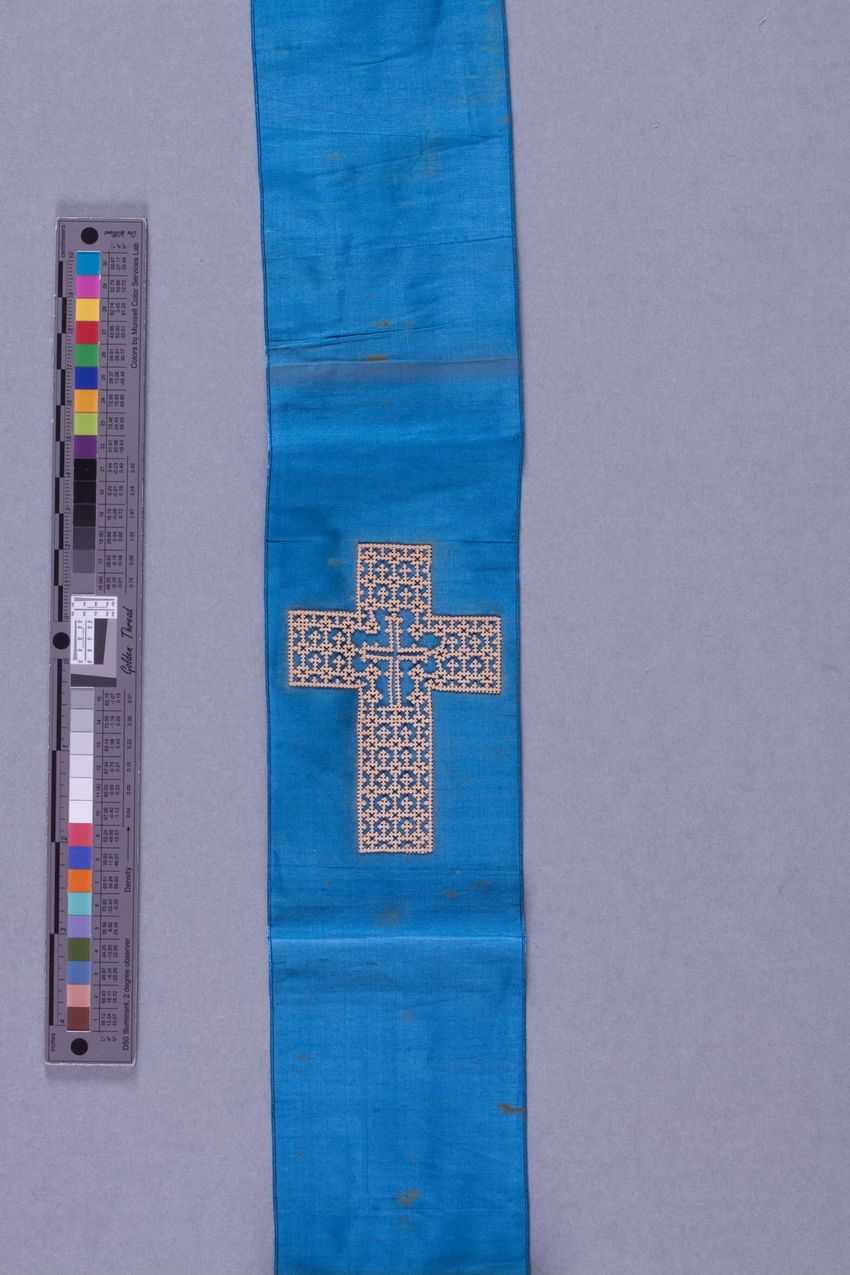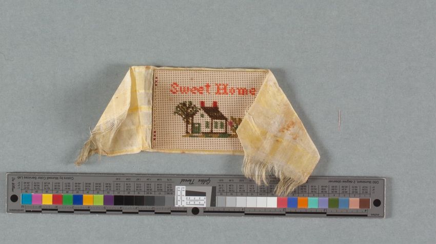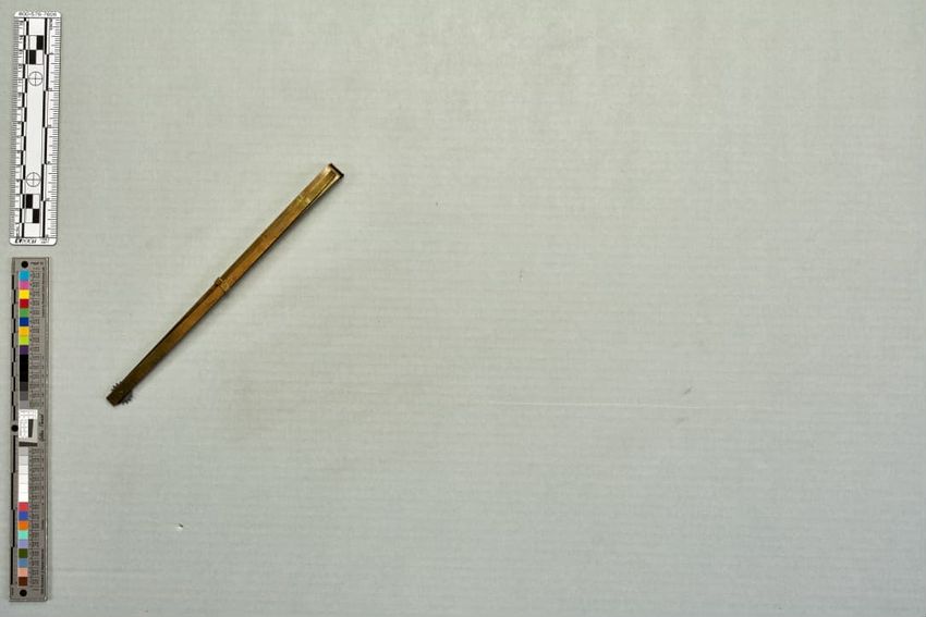brass (alloy), hide (collagenous material), iron (metal), wood (plant material)