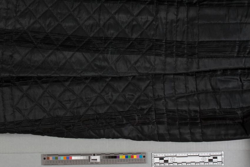 appliqué (technique), damask, lace (needlework), satin, silk (textile), tulle (meshed textile)