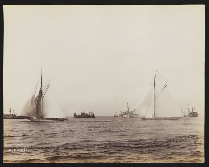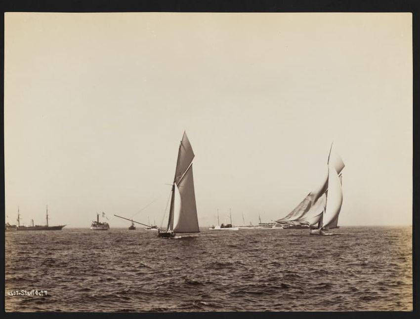 First America's Cup race, 15 miles to windward and return, starting from Sandy Hook Lightship, Vigilant wonAmerica's Cup: Vigilant & ValkyrieSee also: Henry Peabody R.A.Y. #106-110 & p. 259, 264