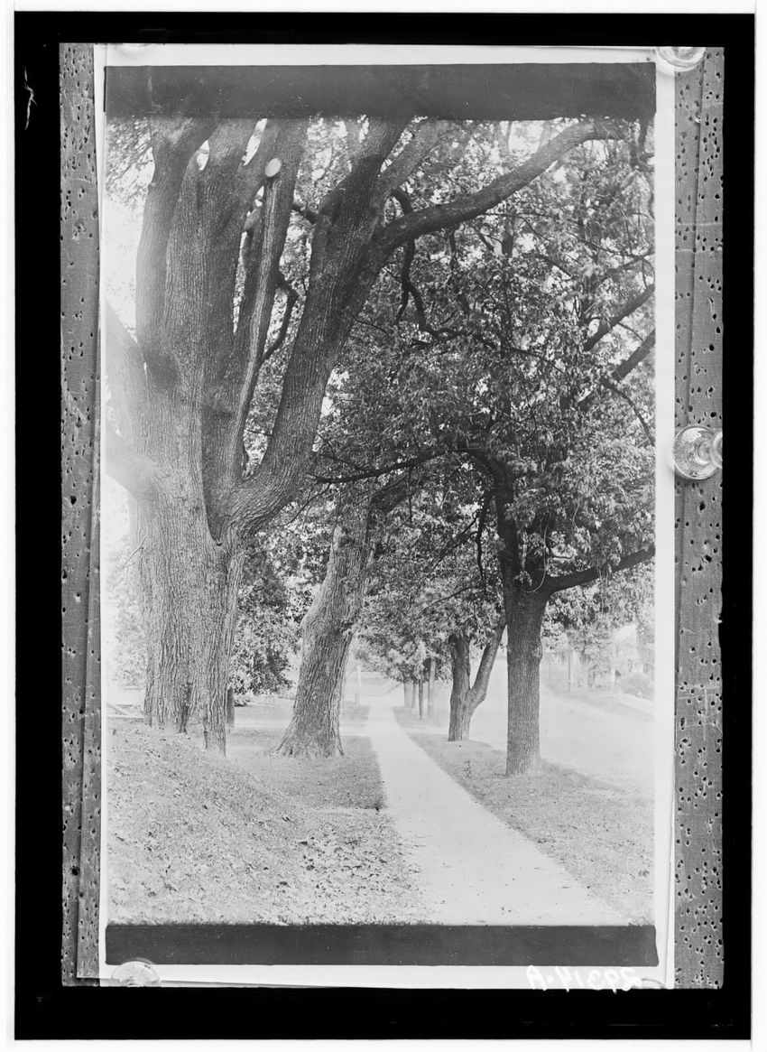 Sidewalk and elms, East Main Street, Shrewsbury, Massachusetts, 29314-A