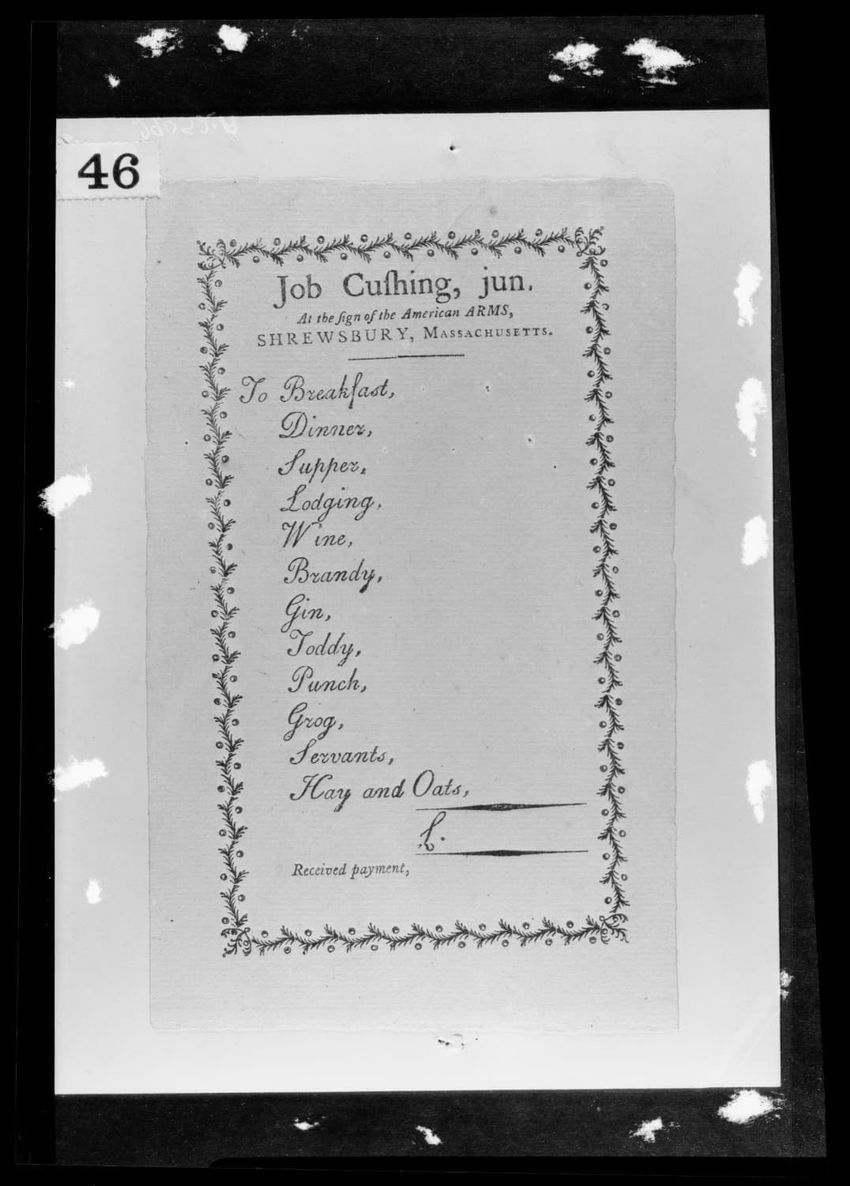 Sample of a bill, Haven Tavern, Shrewsbury, Massachusetts, 29052-A