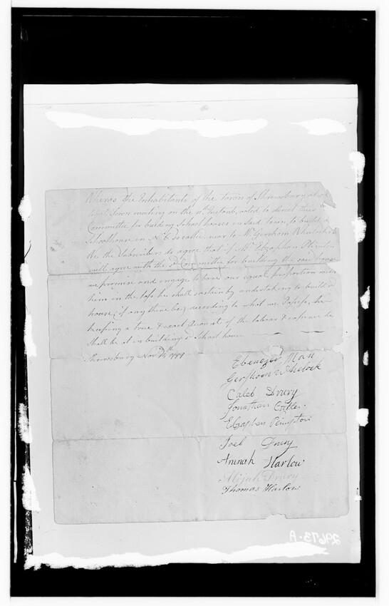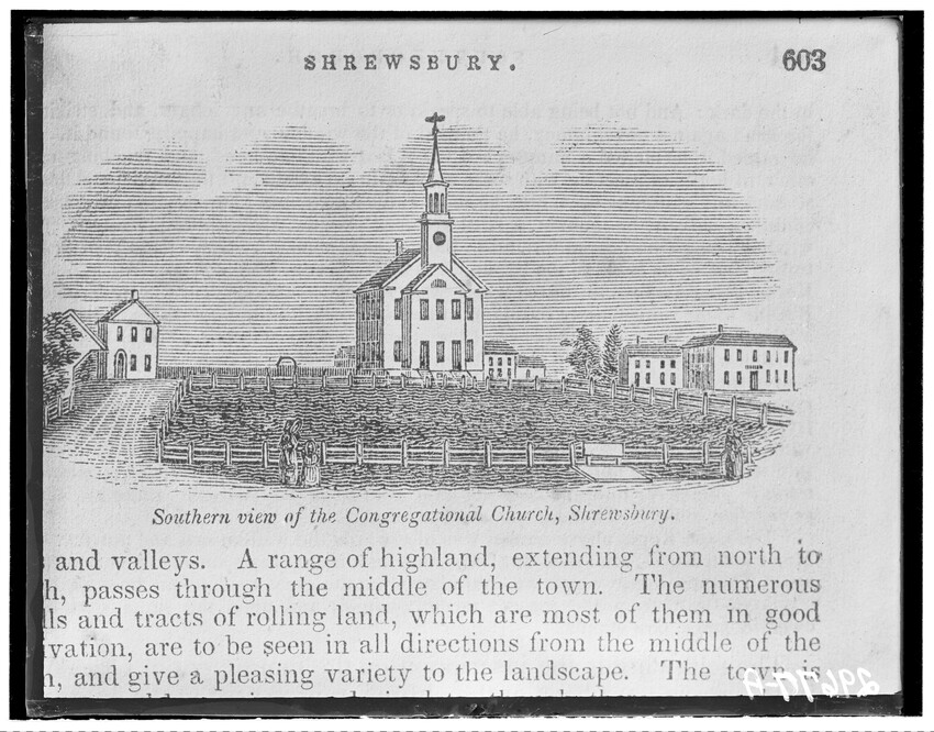 Copy of portrait of Isaiah Thomas, Esq., 29667-A View of houses on unidentified street, Shrewsbury, Massachusetts, 29668-A William Garfield house, Gulf Street, Shrewsbury, Massachusetts, 29669-A Maynard-Rush house, Walnut Street, Shrewsbury, Massachusetts, 29670-A Nathan Howe, Esq. (1762-1851), original daguerreotype owned by Hiram Harlow, Shrewsbury, Massachusetts, 29671-A Document to build schoolhouse, 29673-A W. Warren and other men on horse-drawn carriage, 29674-A Unidentified store, Shrewsbury, Massachusetts, 29675-A Mount Wachusett, from Walker's pasture off Boylston Street, Shrewsbury, Massachusetts, 29676-A Wood engraving of Congregational Church, Shrewsbury, Massachusetts, 29677-A Hapgood Reed's house and barn, Shrewsbury, Massachusetts, 29678-A East Main Street, looking east, Shrewsbury, Massachusetts, 29679-A Pupils of No. 6 school, Shrewsbury, Massachusetts, 29680-A Main Street, corner of South Street, looking east, Shrewsbury, Massachusetts, 29681-A Alfred H. Knight's house, 656 Main Street, Shrewsbury, Massachusetts, 29682-A Snowy view of Shrewsbury Common, Shrewsbury, Massachusetts, 29683-A Grove Street, on Gleason Farm, Shrewsbury, Massachusetts, 29684-A Town farmhouse, Shrewsbury, Massachusetts, 29685-A Mr. L. Knowlton's house, Grafton Street, Shrewsbury, Massachusetts, 29686-A Lower Village, Shrewsbury, Massachusetts, 29687-A Maples along Crescent Street, Shrewsbury, Massachusetts, 29688-A George Foster's house, West Main Street, Shrewsbury, Massachusetts, 29689-A Old schoolhouse, District No. 4, Shrewsbury, Massachusetts, 29690-A Eager house, Holman Street, 29691-A George Foster's house, Main Street, Shrewsbury, Massachusetts, 29692-A Entrance to Dean Park from Main Street, Shrewsbury, Massachusetts, 29693-A Billhead of Robert Thomas, bookbinder and stationer, Sterling, Massachusetts, 29694-A Shrewsbury brass band on the Common, Shrewsbury, Massachusetts, 29695-A Unidentified leather bound book, 29696-A Howe-Harlow-Shepard house, 661 Main Street, Shrewsbury, Massachusetts, 29698-A Howe-Harlow-Shepard house (while State Road was being constructed), 661 Main Street, Shrewsbury, Massachusetts, 29699-A Portrait of unidentified man, 29697-A Two images: view of cemetery and gravestone detail, 29701-A Gravestone detail, 29702-A Two images: gravestone details, 29703-A Two images: views of cemetery, 29704-A Two images: view of town statistics on signboard and unidentified building, 29705-A Two images: gravestones, 29706-A Town hall and public library, soldier's monument from west side, Shrewsbury, Massachusetts, 9568-B Town hall and public library, from south side of Main Street, Shrewsbury, Massachusetts, 9569-B First Congregational Church of Shrewsbury seen through trees on the Common, Shrewsbury, Massachusetts, 9570-B Sumner pulpit and communion table, 9578-B Unidentified house, Shrewsbury, Massachusetts, 9585-B C. W. Watts store, interior, Shrewsbury, Massachusetts, 9571-B View from Mr. Whittall's house, looking south, Shrewsbury, Massachusetts, 9572-B Houses along Main Street, looking east, Shrewsbury, Massachusetts, 9573-B Pulpit in Congregational Church, Shrewsbury, Massachusetts, 9574-B Baseball grounds, Shrewsbury, Massachusetts, 9575-B Congregational church, Shrewsbury, Massachusetts, 9576-B Unidentified stone tower on a hill, built in 1889, West Boylston, Massachusetts, 10305-B