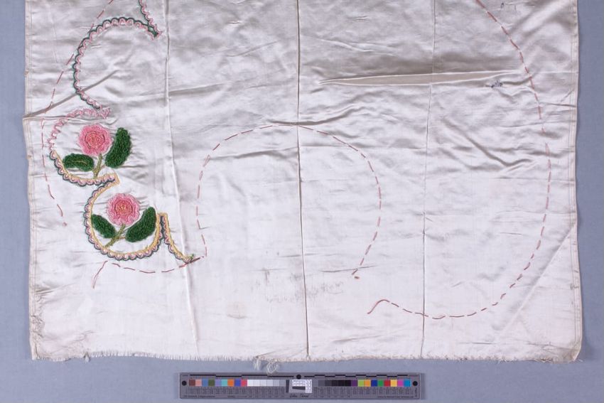 carving (processes), hand coloring, lithography, mother of pearl, paper (fiber product), piercing
