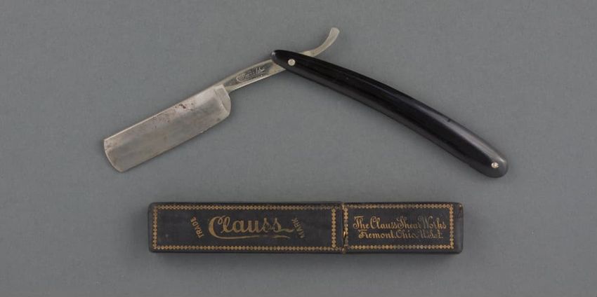 White collar; Eyelet ruffle around neck and down left side of front placket; Band of foliate embroidery of neck ruffle, front yoke and cuffs; Body gathered to yoke; Broad tucks across front yoke; three buttons down center front under concealed placket; Long sleeves gathered at shoulder with eye...