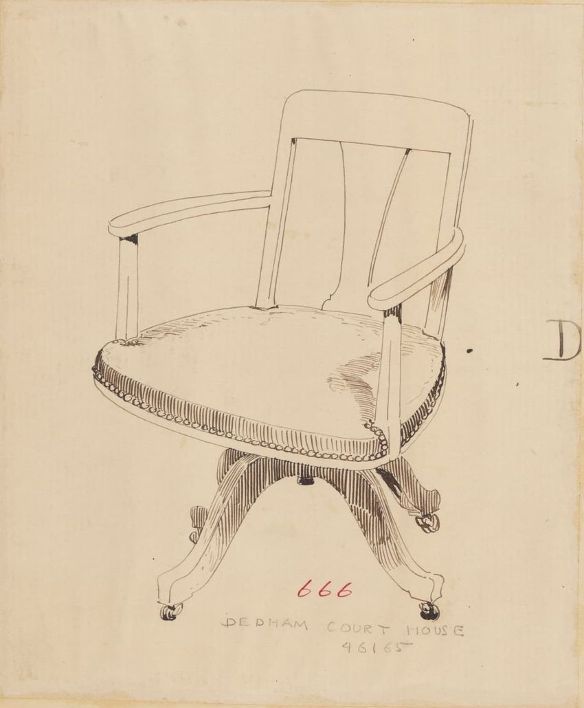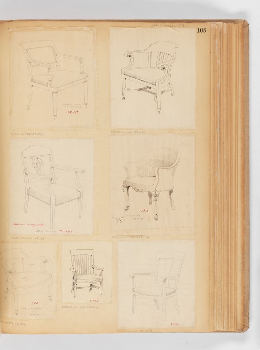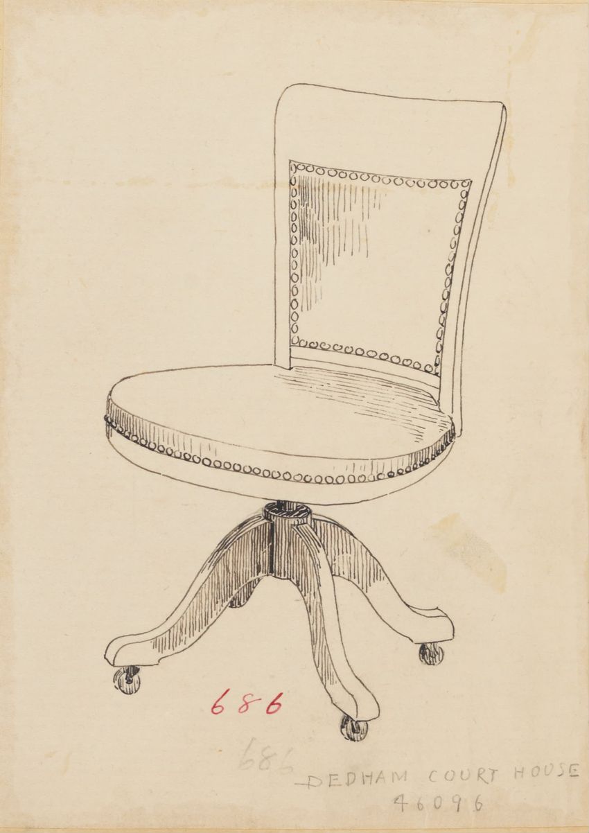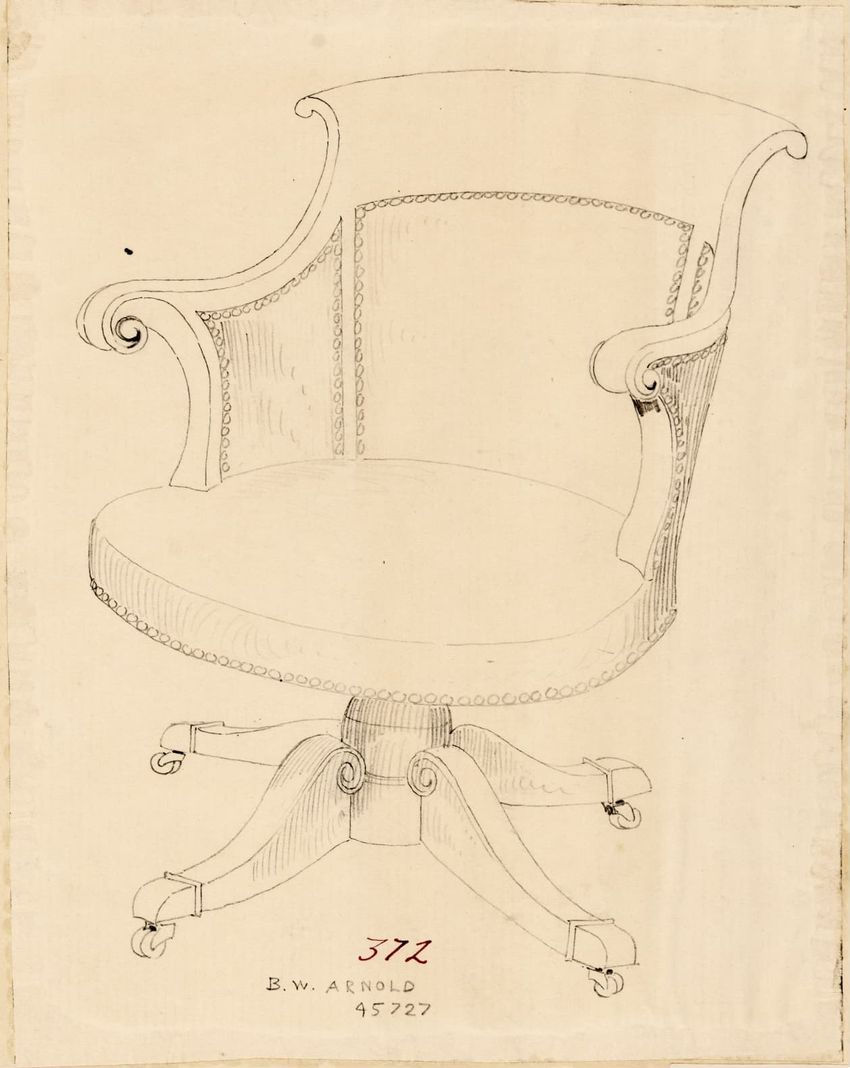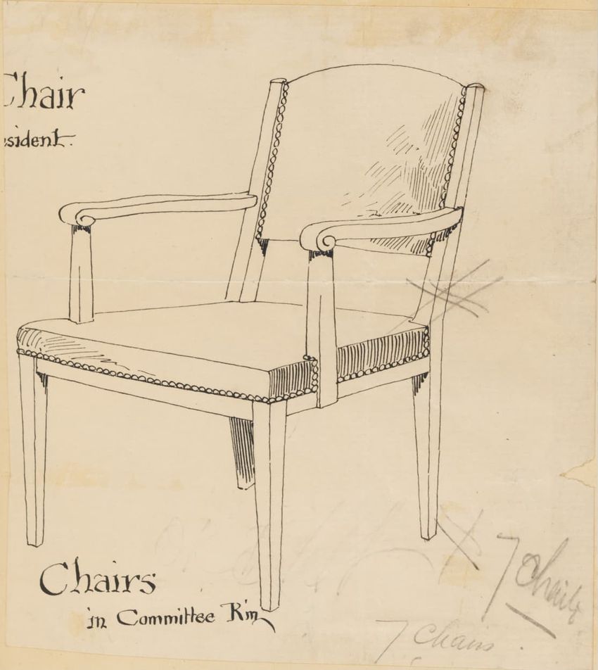 This is a perspective drawing, graphite drawing on paper. It depicts a stone dwelling, three-four stories, featuring three gables and chimneys. The exterior is funished with tall, lean trees and shrubery. A marble, or possibly stone, staircase and handrails line the front of the dwelling.