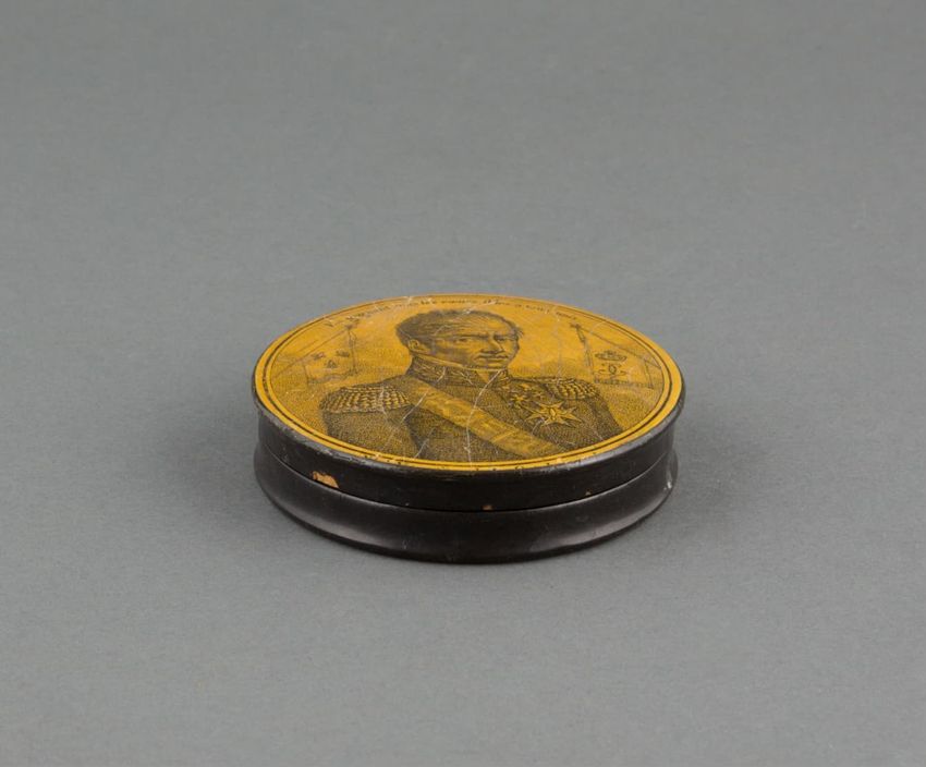 Scalloped edge with thin orange line and border of pink scrolled lattice medallions and pink, green, and oragne beribboned sprigs of flowers; tiny pink and green enamel flower buds around well, surrounding central enamel spray of pink rose with smaller flowers, green leaves, cash symbols and gilt ri...