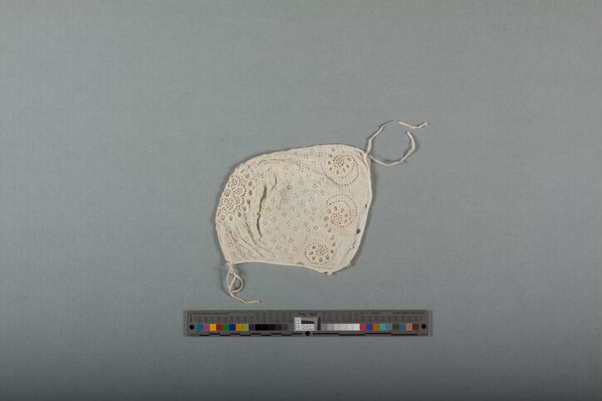 appliqué (technique), Berlin woolwork, cotton (textile), cross-stitching, embroidering, silk (textile), twill, velvet (fabric weave), wool (textile)