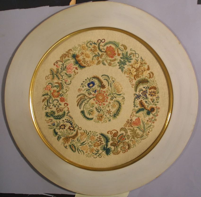 Berlin woolwork, canvas, wool (textile)