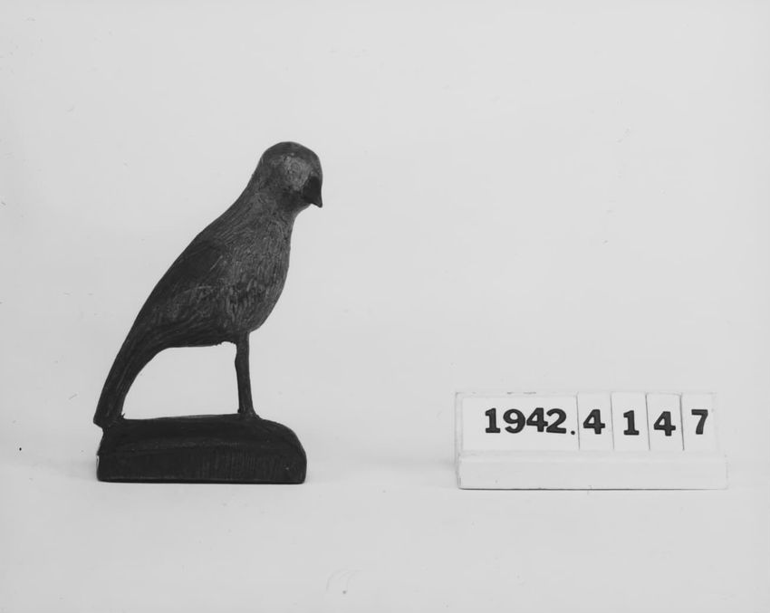 Brown with a circular foot, reel stem, incised body; bulbous pestle; contrasting burl