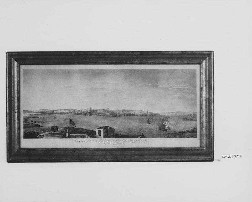 Boston Harbor from Dorchester Heights. Text at bottom reads "A View of the City of Boston the Capital of New England in North America."