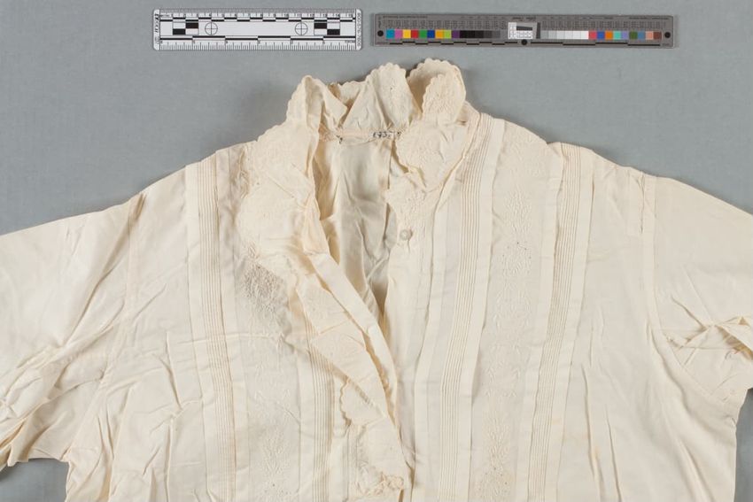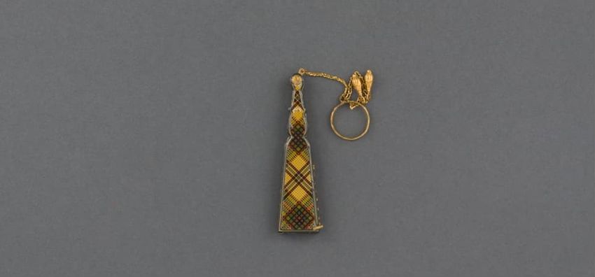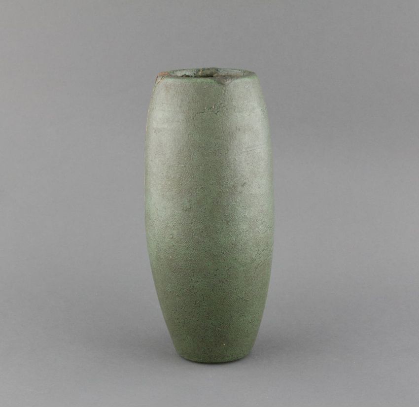 Porcelain pitcher with bulb-shaped body, lid with berry knop and forked handle [broken off] with leaf terminals. Molded elements, border patterns and floral figures on body painted red, orange, green, black, purple and metallic gold.