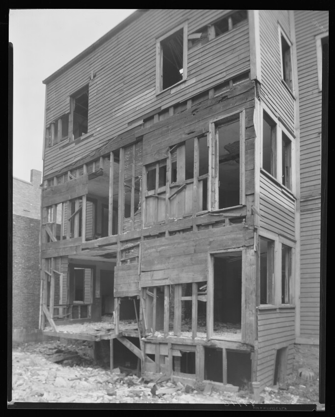 Tenement house, front exterior, 50 Lucas Street, Boston, Massachusetts, 8386-B Tenement house, side exterior, 50 Lucas Street, Boston, Massachusetts, 8387-B Stores, side exterior, 32 and 34 Lowell Street, Boston, Massachusetts, 8388-B Unidentified building, side exterior, 32 and 34 Lowell Street, Boston, Massachusetts, 8389-B Tenement house, front exterior, 11 New Street, East Boston, Massachusetts, 8390-B Unidentified building, front exterior, 112 Longwood Avenue, Roxbury, Boston, Massachusetts, 8391-B Unidentified building, front exterior, 112 Longwood Avenue, Roxbury, Boston, Massachusetts, 8392-B Unidentified building, exterior, 27 Paine Street, West Roxbury, Boston, Massachusetts, 8393-B Unidentified building, exterior, 27 Paine Street, West Roxbury, Boston, Massachusetts, 8394-B Unidentified buildings, side exterior, 1-2-3 Oxford Place, Boston, Massachusetts, 8395-B Unidentified buildings, side exterior, 1-2-3 Oxford Place, Boston, Massachusetts, 8396-B Unidentified buildings, exterior, 1-2-3 Oxford Place, Boston, Massachusetts, 8397-B Unidentified buildings, roof exterior, 1-2-3 Oxford Place, Boston, Massachusetts, 8398-B Unidentified buildings, exterior, 1-2-3 Oxford Place, Boston, Massachusetts, 8399-B Unidentified buildings, exterior, 1-2-3 Oxford Place, Boston, Massachusetts, 8400-B Unidentified buildings, exterior, 1-2-3 Oxford Place, Boston, Massachusetts, 8401-B Ruined wall by apartment buildings, exterior, 107-119 Ormond Street, Dorchester, Boston, 8406-B Ruined wall by apartment buildings, exterior, 107-119 Ormond Street, Dorchester, Boston, 8407-B Building foundation, exterior, 53 Ormond Street, Dorchester, Boston, Massachusetts, 8408-B Building foundation, exterior, 53 Ormond Street, Dorchester, Boston, Massachusetts, 8409-B Tenement houses, front and side exterior, 3-5-7 Oregon Street, Roxbury, Boston, Massachusetts, 8410-B Tenement houses, rear and side exterior, 3-5-7 Oregon Street, Roxbury, Boston, Massachusetts, 8411-B House, front exterior, 7-9 Orchard Street, West Roxbury, Boston, Massachusetts, 8412-B Apartments, front and side exterior, 4 Ambrose Street, Roxbury, Boston, Massachusetts, 8771-B Unidentified building, side and rear exterior, Alger Street, South Boston, Boston, Massachusetts, 8772-B Unidentified building, side exterior, Alger Street, South Boston, Boston, Massachusetts, 8773-B Unidentified building, rear exterior, Alger Street, South Boston, Boston, Massachusetts, 8774-B Bay State Hospital, front exterior, 310 Bay State Road, Boston, Massachusetts, 8775-B House, front and side exterior, 41 Allston Street, Charlestown, Boston, Massachusetts, 8777-B Orient Heights Yacht Club, front and side exterior, 61 Bayswater Street, East Boston, Boston, Massachusetts, 8778-B Unidentified building, rear and side exterior, 87 Belgrade Avenue, West Roxbury, Boston, Massachusetts, 8779-B Unidentified building, front and side exterior, 87 Belgrade Avenue, West Roxbury, Boston, Massachusetts, 8780-B Apartment building, exterior, rubble, Bell Court, South Boston, Boston, Massachusetts, 8781-B Apartment building, front exterior, rubble, Bell Court, South Boston, Boston, Massachusetts, 8782-B Apartment building, rear exterior, rubble, Bell Court, South Boston, Boston, Massachusetts, 8783-B Apartment building, front and side exterior, 8 Bell Court, South Boston, Boston, Massachusetts, 8786-B Apartment building, side exterior, 4 Ambrose Street, Roxbury, Boston, Massachusetts, 8787-B Apartment building, front and side exterior, 4 Ambrose Street, Roxbury, Boston, Massachusetts, 8788-B House, front and side exterior, 43 Allston Street, Boston, Massachusetts, 8789-B Tenement houses, rear exterior, 157-159 Silver Street, South Boston, Boston, Massachusetts, 8790-B Tenement houses, rear exterior, 157-159 Silver Street, South Boston, Boston, Massachusetts, 8791-B Tenement houses, front exterior, 157-159 Silver Street, South Boston, Boston, Massachusetts, 8792-B Garage, interior view, 340 Athens Street, South Boston, Boston, Massachusetts, 8794-B Tenement houses, exterior, 157-159 Silver Street, South Boston, Boston, Massachusetts, 8795-B Unidentified building, rear and side exterior, 399 Athens Street, South Boston, Boston, Massachusetts, 8796-B Unidentified building, front and side exterior, 399 Athens Street, South Boston, Boston, Massachusetts, 8797-B Branch Post Office, front and side exterior, corner of Atlantic Avenue and Beach Street, Boston, Massachusetts, 8798-B Unidentified building, exterior view of brick wall, 66 Auburn Street, Boston, Massachusetts, 8800-B Unidentified building, front exterior, 64-66 Auburn Street, Boston, Massachusetts, 8801-B Unidentified building, front and side exterior, 61 B Street, South Boston, Boston, Massachusetts, 8802-B