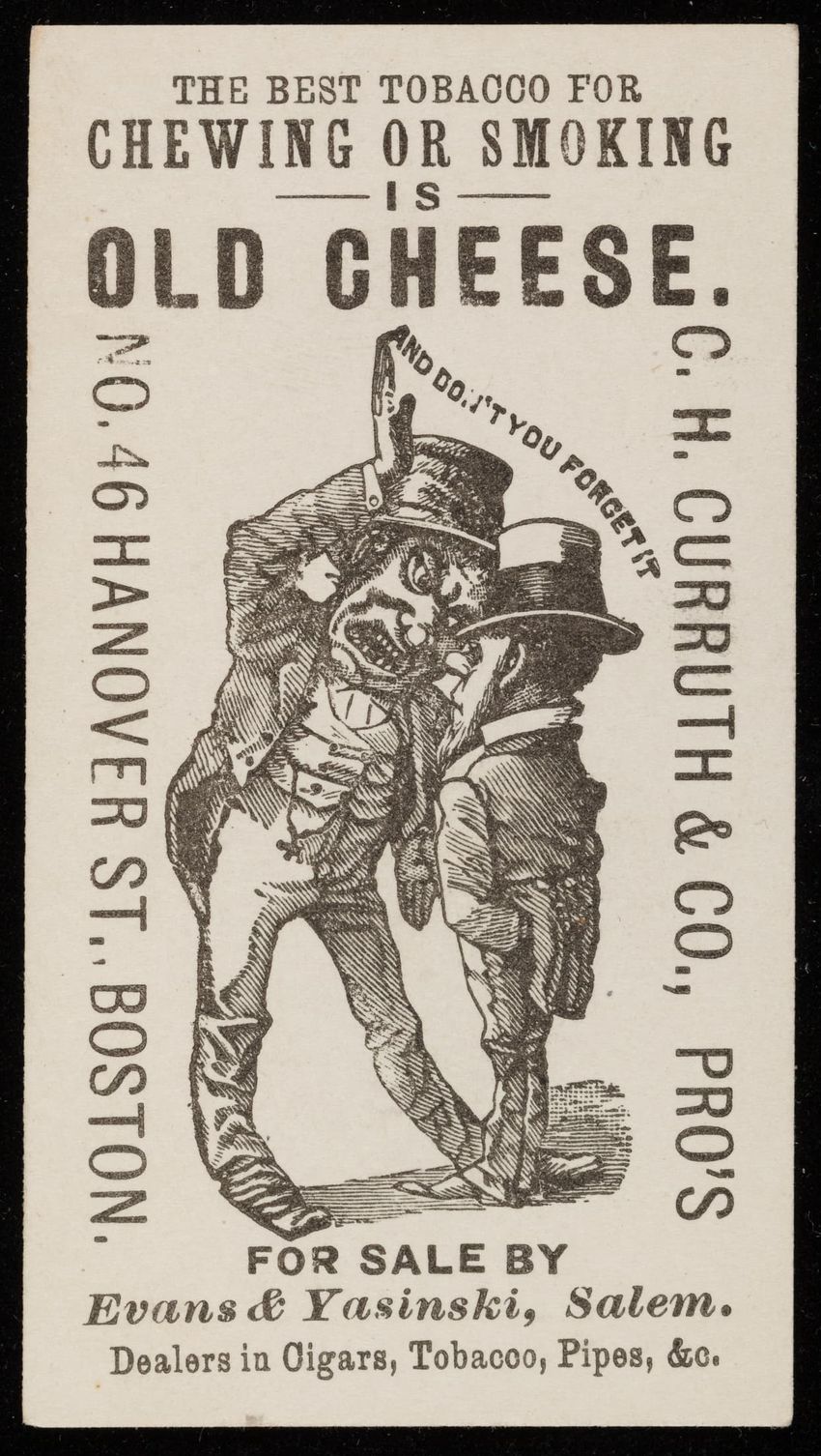 The plug tobacco is for sale at E.H. Turner, jobber in tobacco and segars, in Bath, Maine.