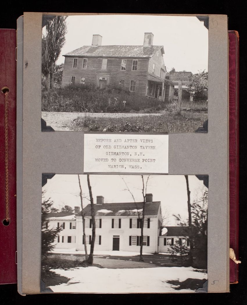Approximately fifty 4x6 photographs by Wilfred French, all annotated. An index accompanies the album. Photographs date from the 1880s to the early 1890s and include buildings in Concord, Boston, Lexington, Dedham, Dorchester, Duxbury, Salem, Cambridge, Medford, Saugus, Danvers, Winchester, Andover, ...
