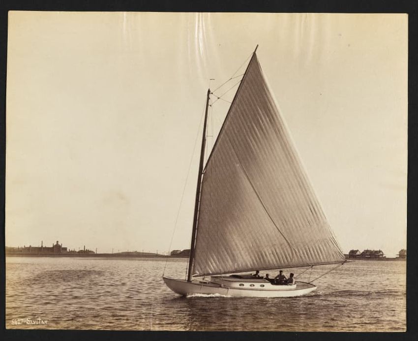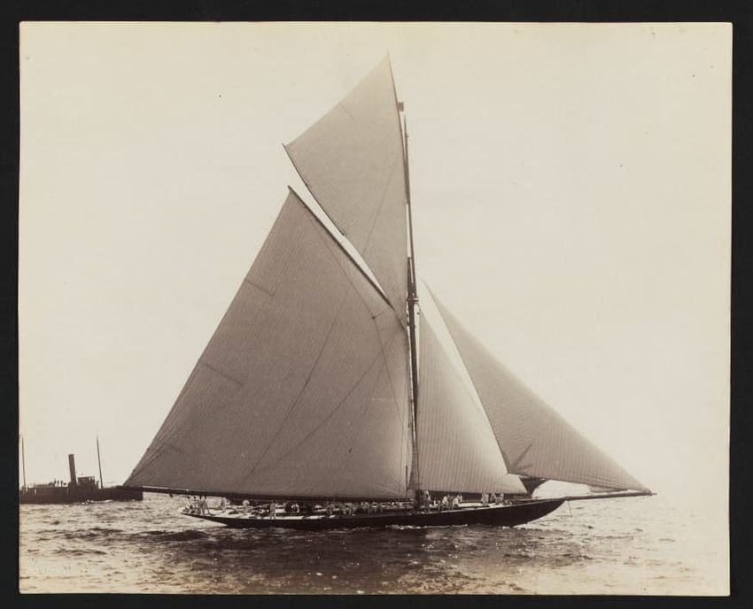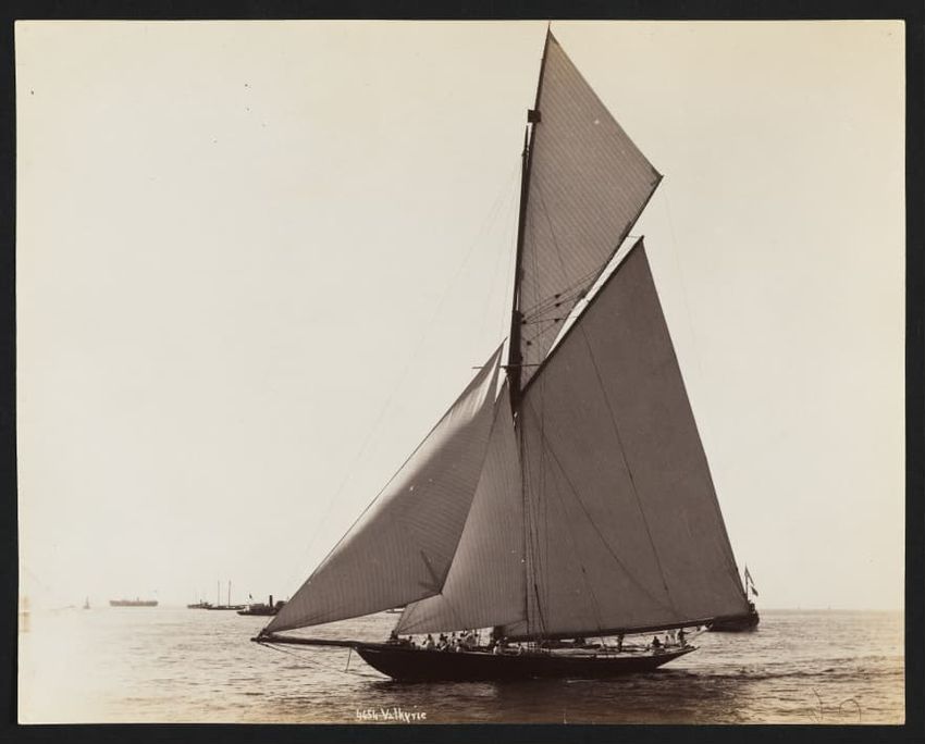 First America's Cup race between Vigilant and Valkyrie, 15 miles to windward and return, starting from Sandy Hook Lightship, Vigilant wonSee also p. 286 of this index (neg. nos. 4599-4674, races)See also: Henry Peabody R.A.Y. #101 (Valkyrie) and #106-110 (Valkyrie and Vigilant)
