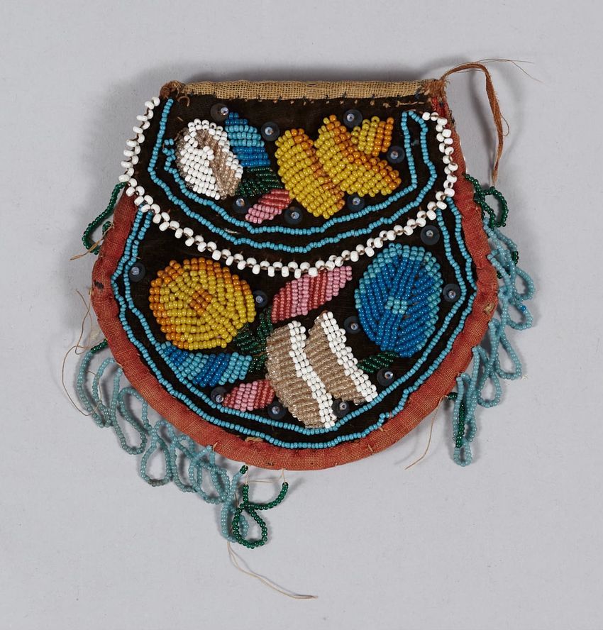 Square shawl woven in shades of red, purple, black, white, green & yellow; paisley motifs worked in wide inner border. Outer border of smaller repeating arches and floral motifs centered in rectangular sections with background and fringe in solid blue, black, and red (alternating).
