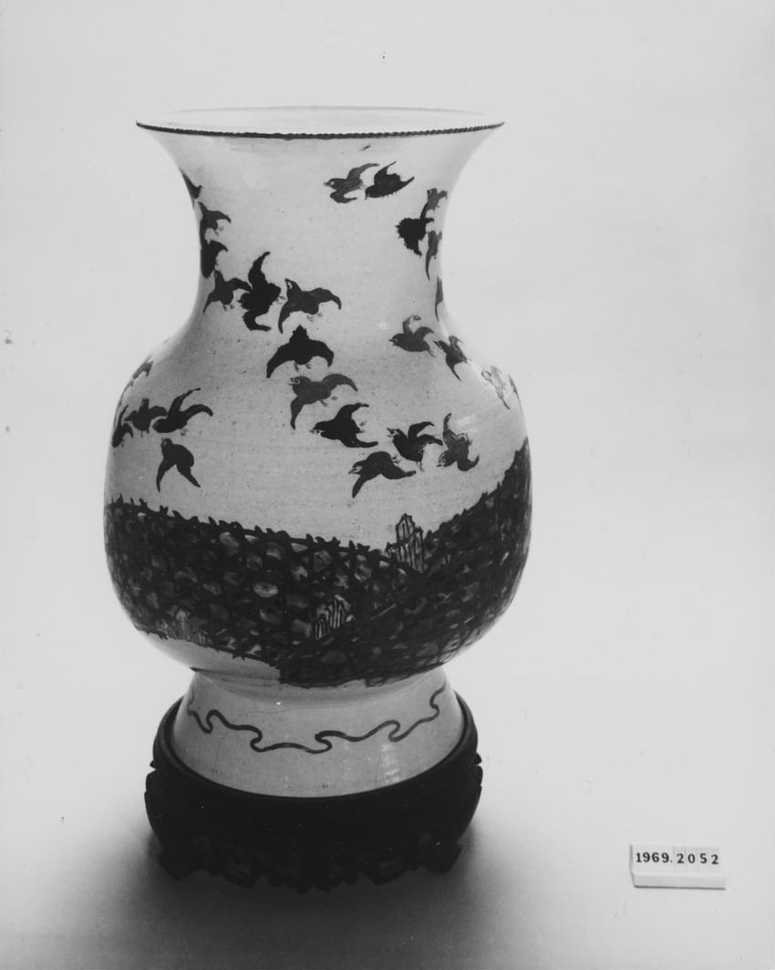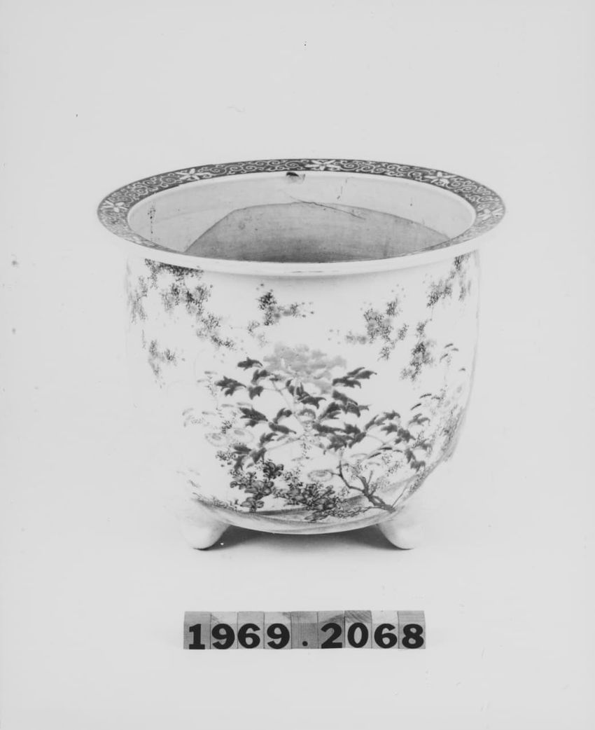 Grey, blue, yellow; bulbous, Japanese floral motif, Neoclassical trim