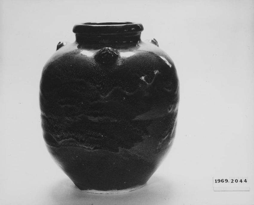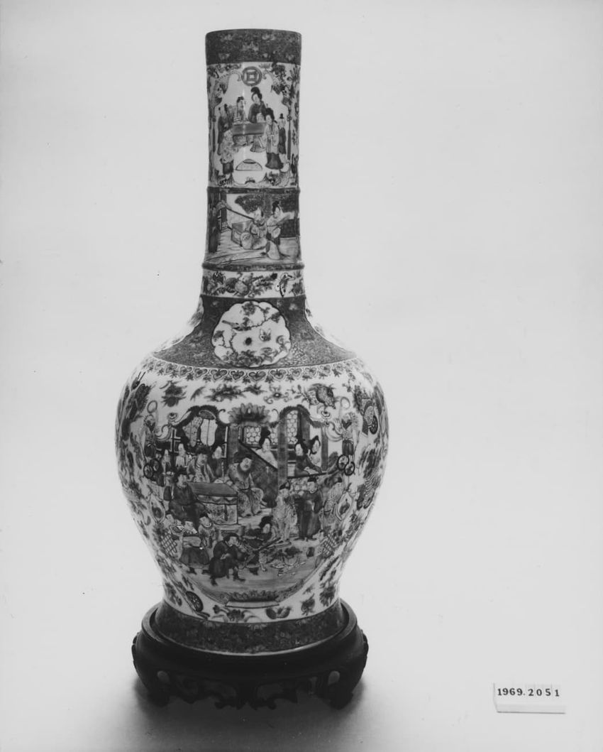 Grey, blue, yellow; bulbous, Japanese floral motif, Neoclassical trim