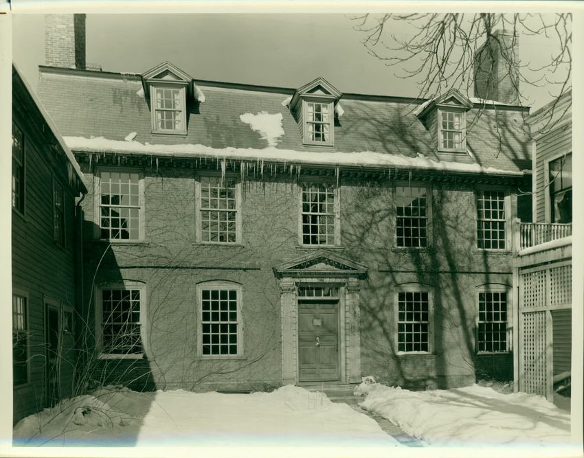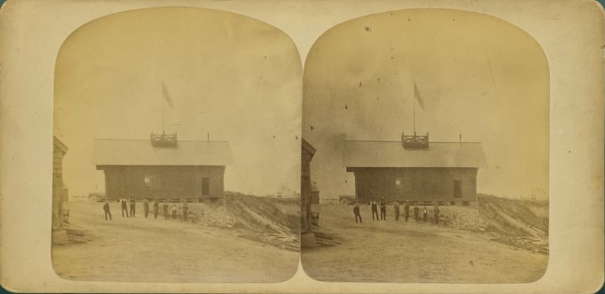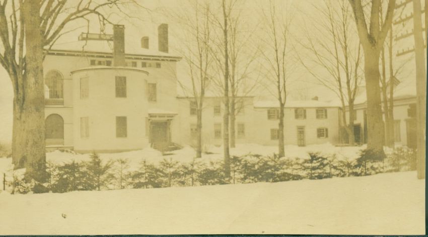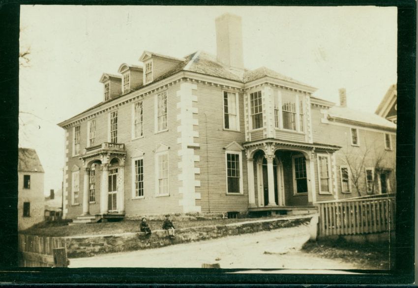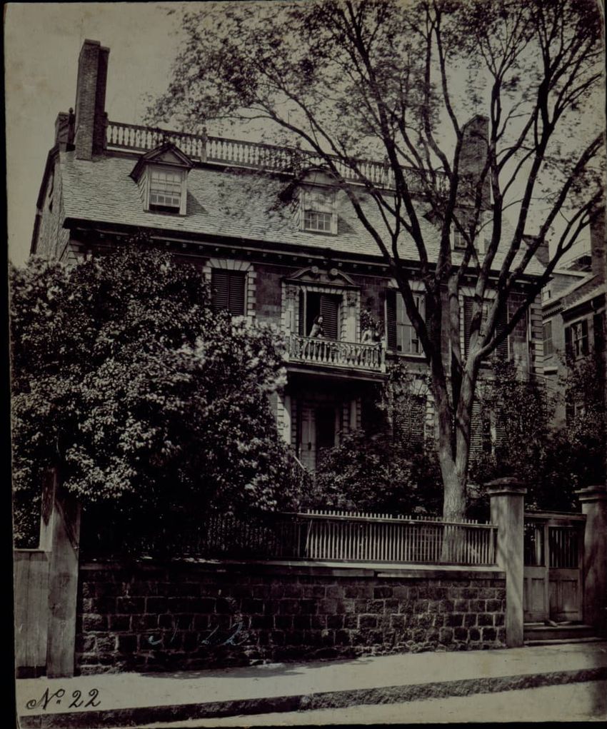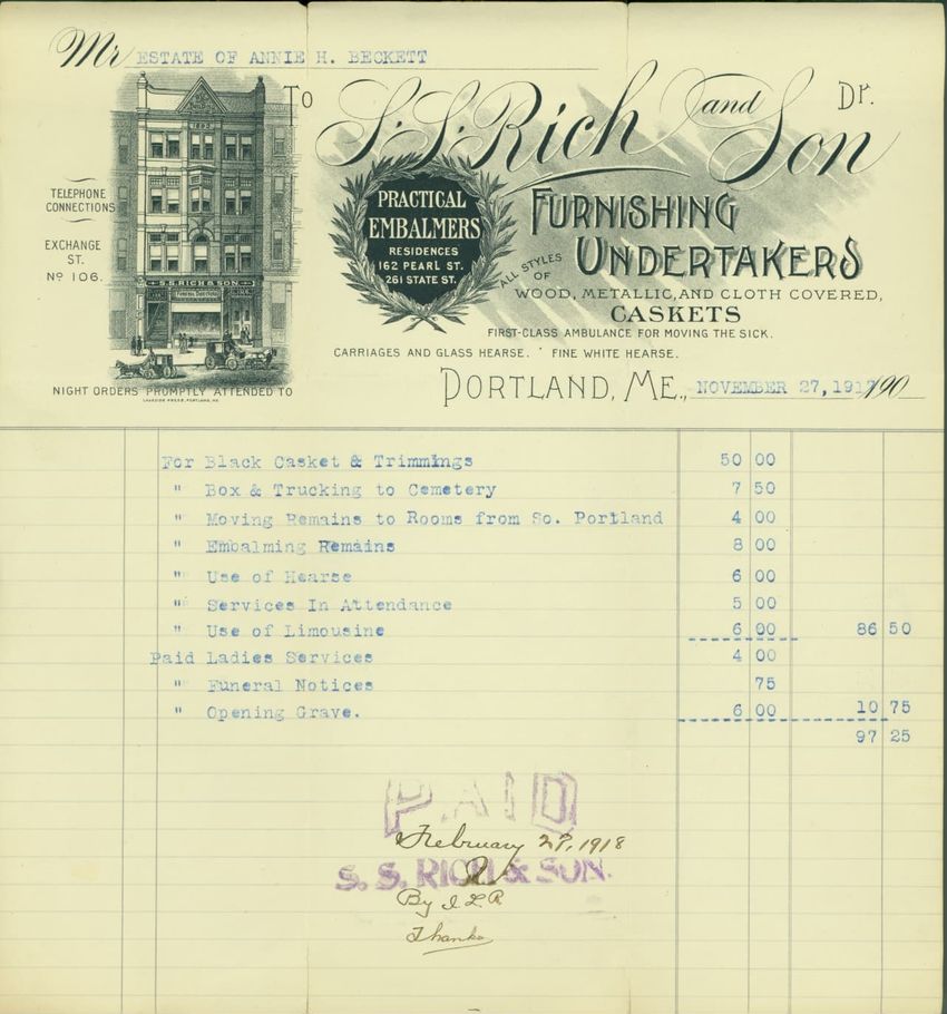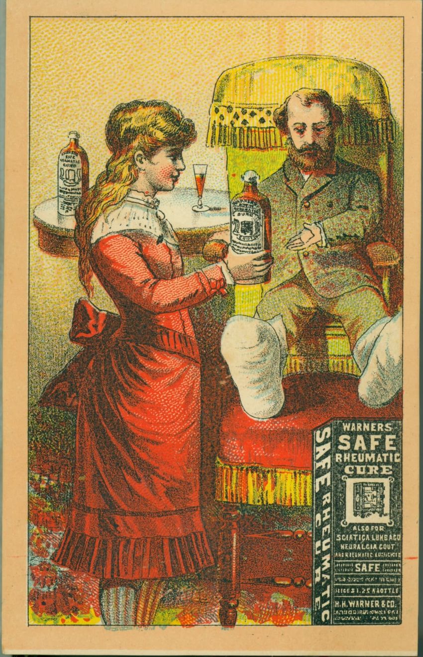 The image features three bands of intricate floral patterns. The card advertises that the company can furnish "brown, buff, and white blanks, satins, grounds, and gold papers, borders, and mouldings, window shades, fixtures, and trimmings. Any colorings to order." The company operated both wholesale...